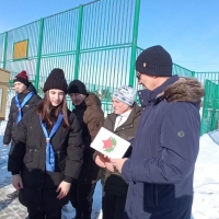 Школьники сделали сами и вручили всем присутствующим на мероприятии поздравительные открытки «С Днем защитника Отечества».