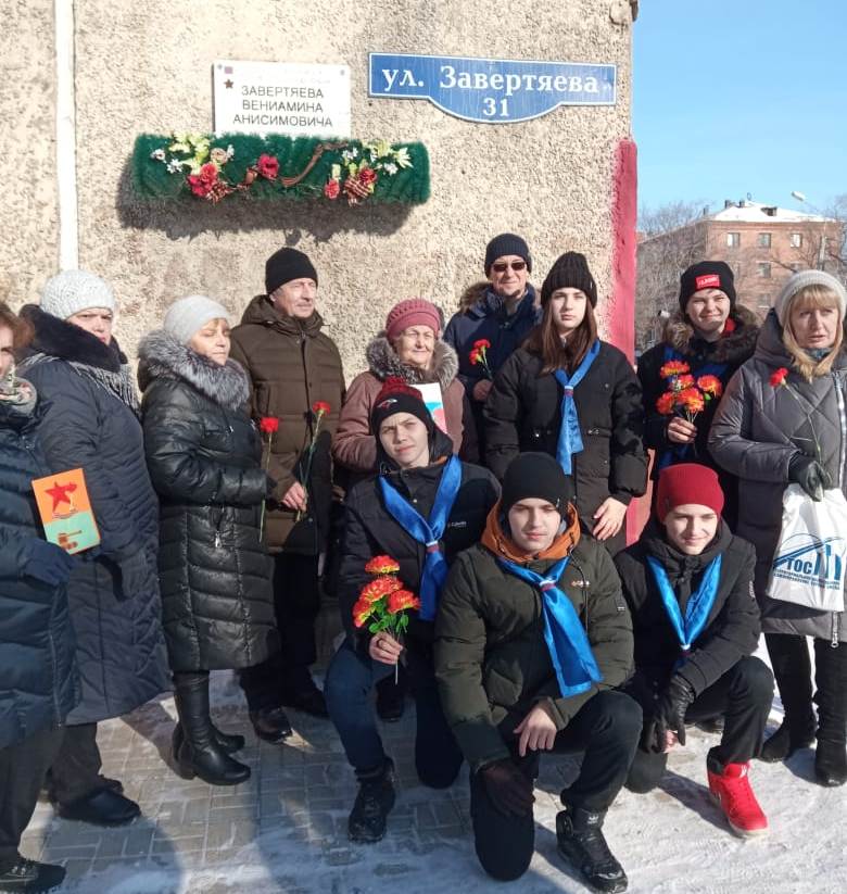 Торжественное мероприятие проходило в Сквере Героев - земляков и у памятной доски Героя Советского Союза В.А. Завертяева. В мероприятии приняли участие Депутат городского Совета Аркадий Лунев, ребята школьного объединения «Поиск» СШ № 81, активисты и жители микрорайона.