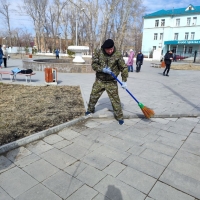Вместе с активистами КТОС «Нефтяник» и студентами Омского монтажного техникума депутат привел в порядок территорию возле фонтана рядом с детской городской клинической больницей №3. После,  с активистами КТОС «Энтузиастов» отчистил от мусора и прошлогодней листвы одноименный сквер. Третья точка -  придомовые территории.