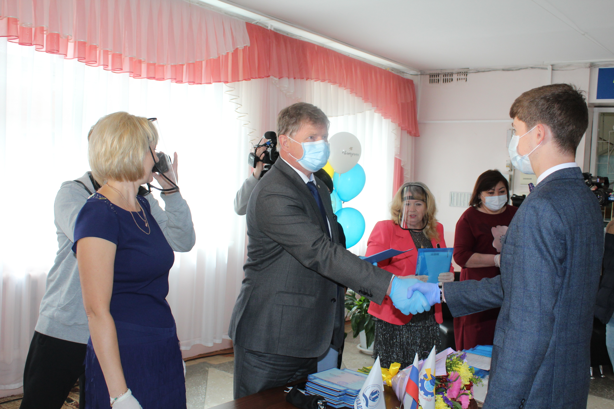 Вместе с директором лицея Владимир Корбут и Анастасия Терпугова передали в руки выпускников долгожданные аттестаты и медали. Несмотря на то, что участники церемонии были облачены в маски и перчатки, в зале чувствовалась атмосфера праздника.