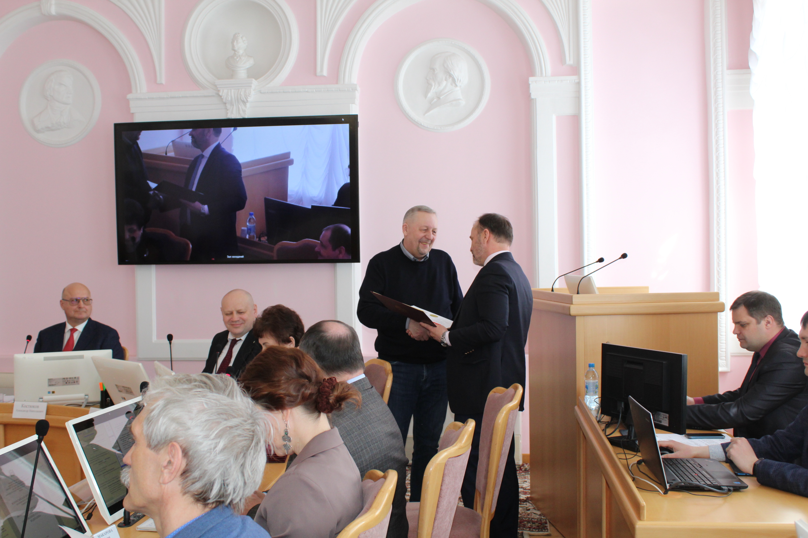 Круглый стол начался с награждения депутатов грамотами клуба руководителей муниципальных руководителей (КРМС) за вклад в развитие местного самоуправления. Почетные грамоты вручили Виталию Путинцеву, Светлане Студеникиной, Сергею Дроздову, Юрию Козловскому, Дмитрию Лицкевичу и Андрею Никитину. Также Почетной грамотой отметили председателя конторольно-счетной палаты Ирину Лен.