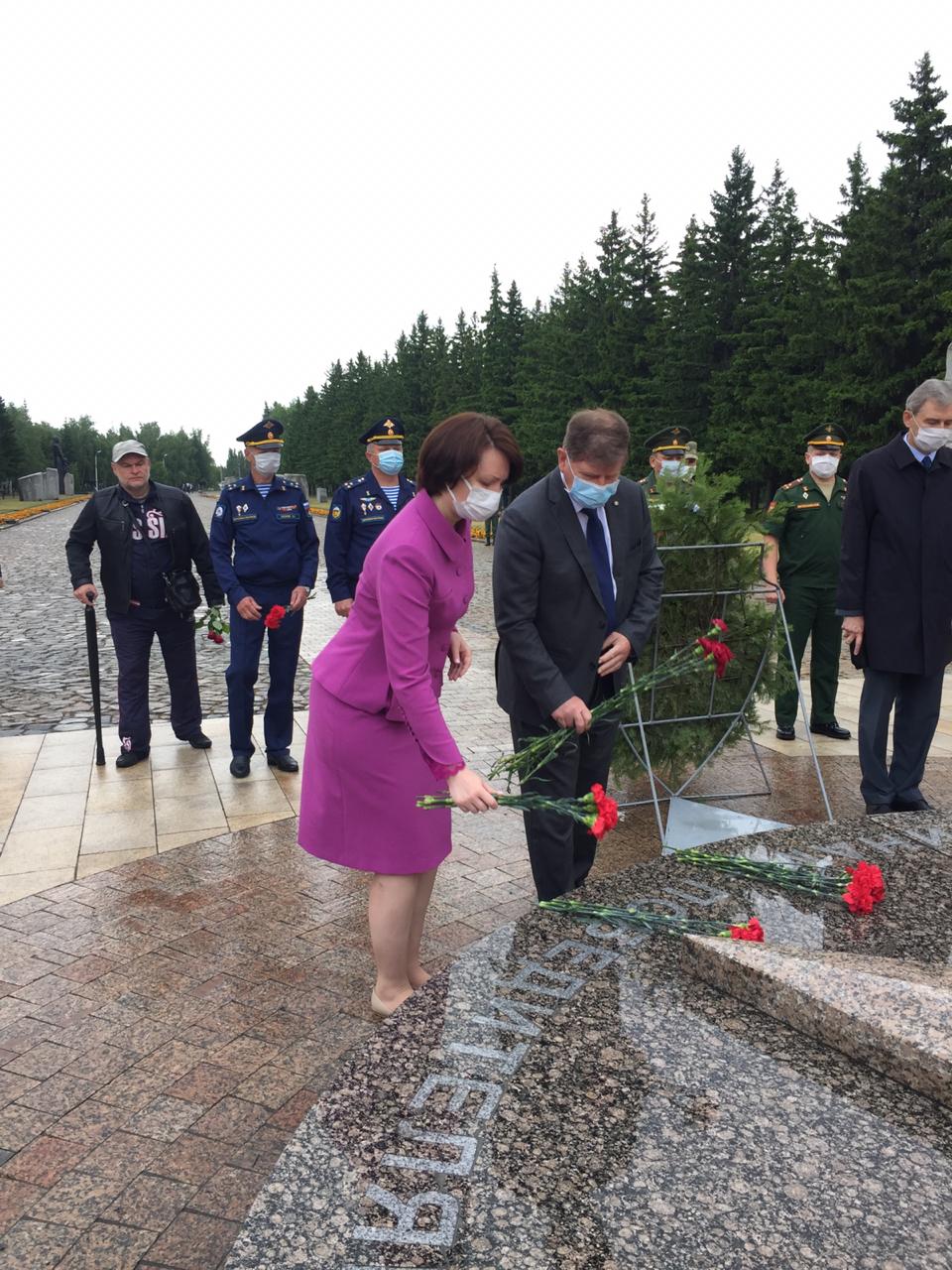 Утром депутаты горсовета приняли участие в церемонии возложения цветов к скульптурам «Сибирячка с сыном» и «Солдат-победитель».
