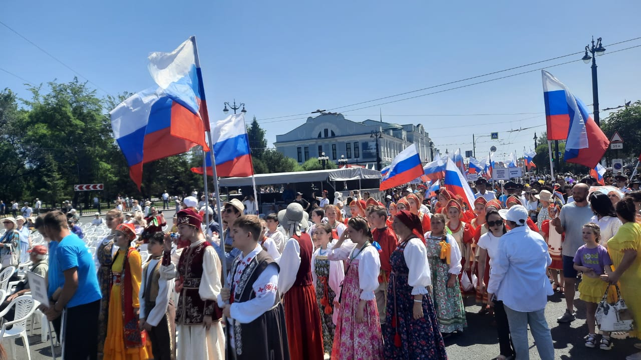 День России — 12 июня началось в Омске с яркого Парада национальностей. Более 2000 участников в национальных костюмах прошли колонной от улицы Партизанской до площади Победы, где работали шесть сценических площадок. Также там побывали руководители города и области, они поздравили все с праздником и написали свои пожелания на специально установленном баннере.