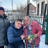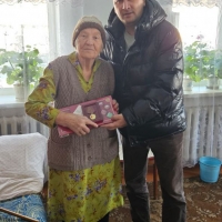 Долгожитель — Мария Павловна, ей 101 год, она почти не ходит, но очень была рада визиту гостей. Всем вручил подарки, пожелал здоровья и добра, и по-сыновьи обнял,