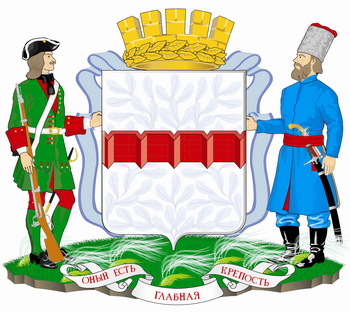 Геральдическое описание герба: в серебряном поле червленая мурованная черным стена с малыми треугольными бастионами. Щит увенчан золотой башенной короной о пяти зубцах, окруженной по обручу золотым лавровым венком, и окружен лентой ордена Трудового Красного Знамени. Щитодержатели: фузилер пехотных полков времен императора Петра Великого и сибирский казак в одеянии и вооружении второй половины XVIII века. Подножие: зеленая земля, поросшая травой и ковылем. Девиз «ОНЫЙ ЕСТЬ ГЛАВНАЯ КРЕПОСТЬ» начертан червлеными литерами на серебряной ленте.