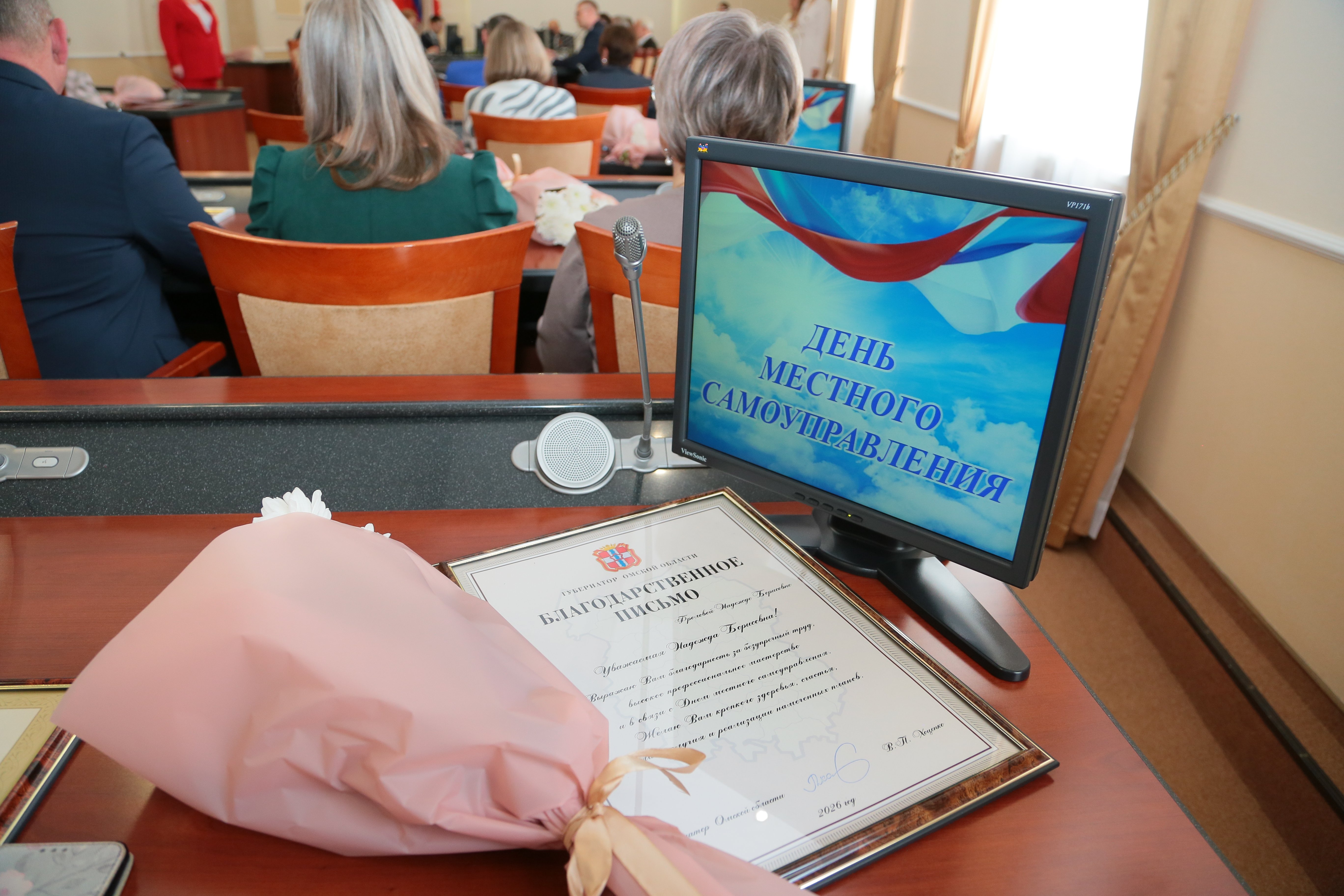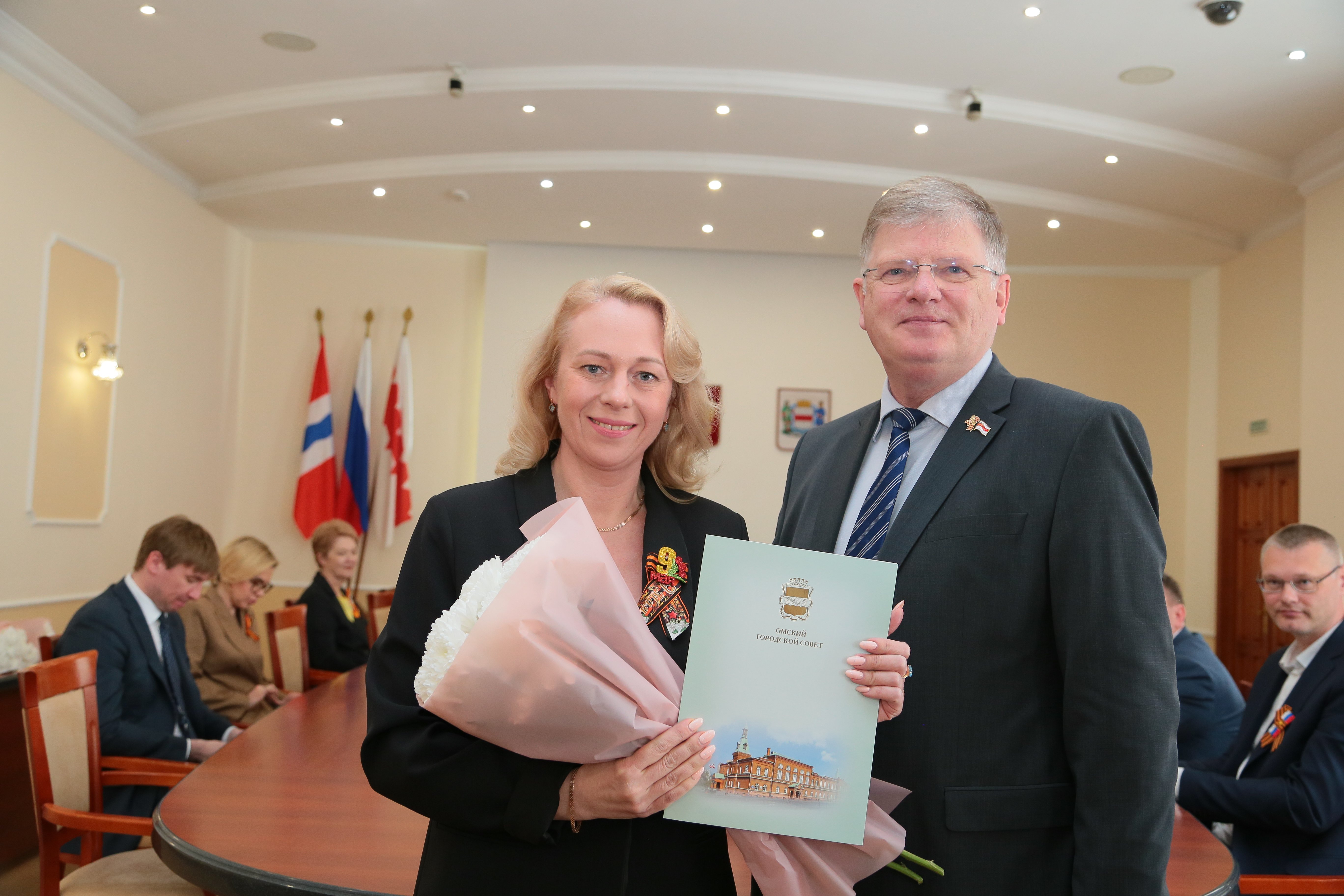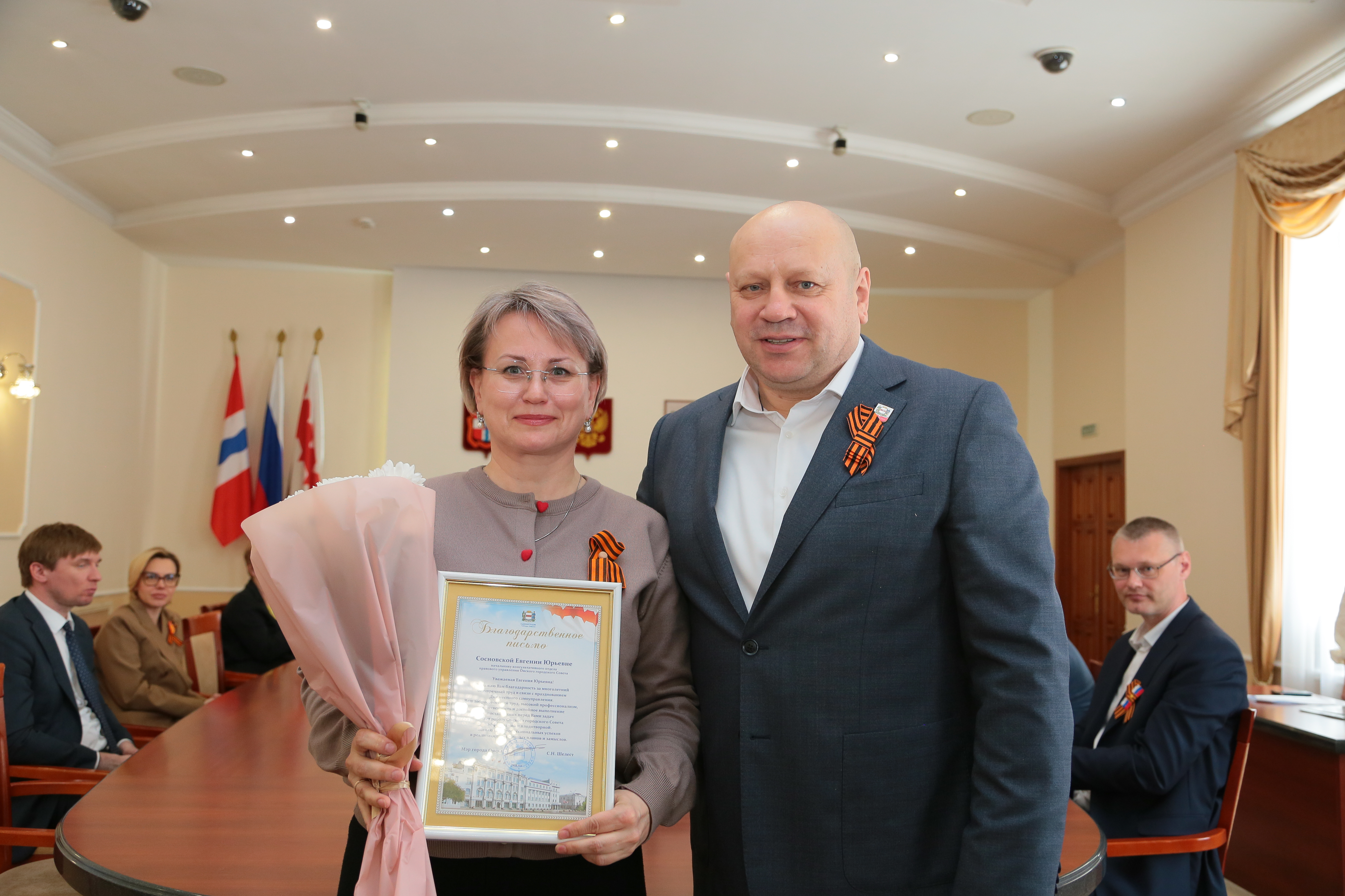 Председатель Омского городского Совета Владимир Корбут и мэр города Сергей Шелест вручили лучшим работникам почетные грамоты и благодарственные письма.
