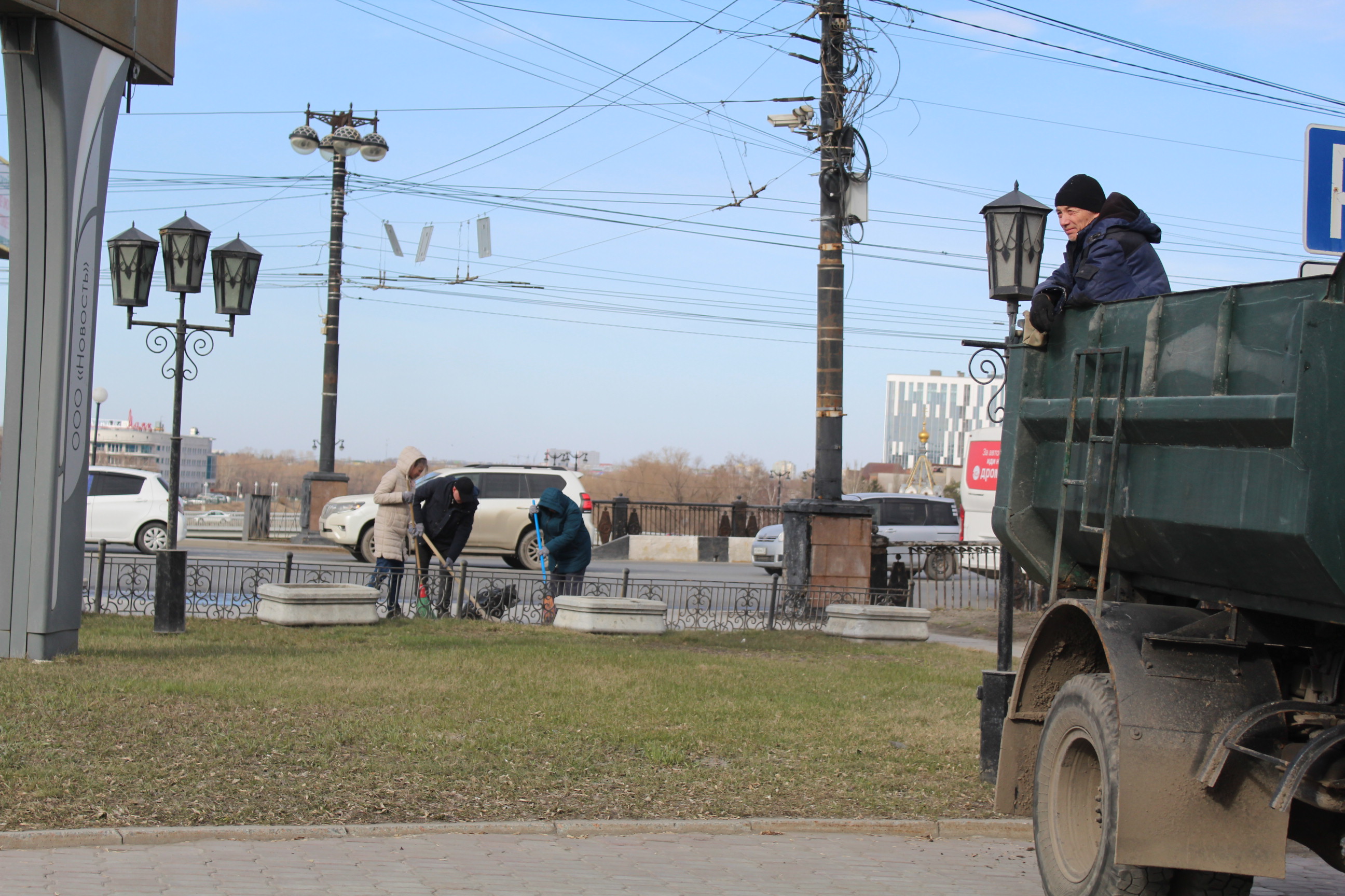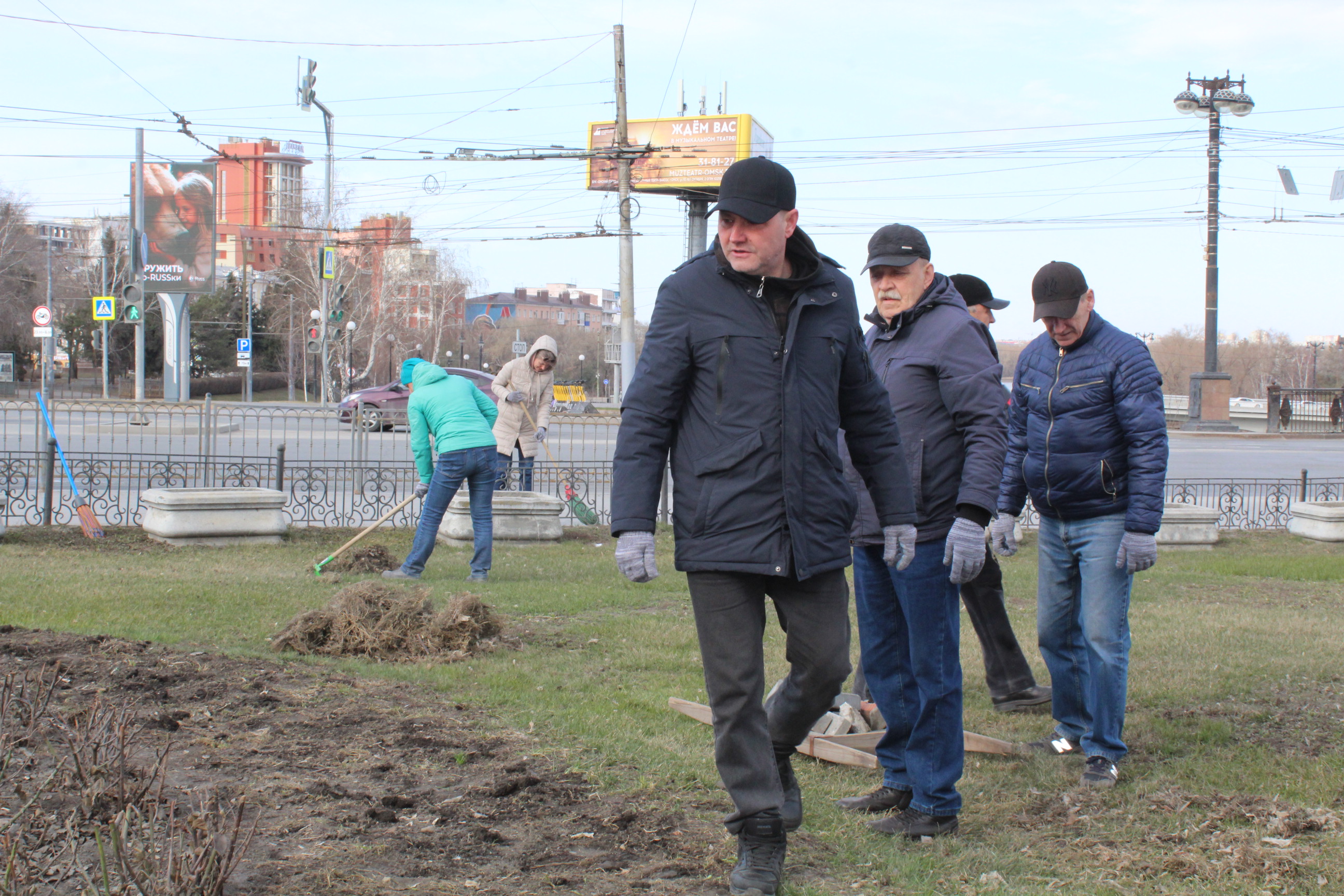 К уборке территорий традиционно присоединились сотрудники Омского городского Совета. Они навели порядок возле исторического здания парламента, были расчищены дорожки и прилегающие к ним газоны. Здесь же расположена одна из самых красивых клумб города. Уже скоро на ней вновь зацветут розы.