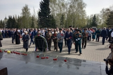 В день празднования 74-ой годовщины Победы в Великой Отечественной войне в Омске прошли торжественные церемонии возложения венков к монументам и обелискам воинской славы.