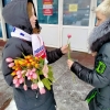 В раздаче цветов приняли участие активисты «Молодой Гвардии».На протяжении двух дней на улицах округа ребята дарили теплоту,радость и яркие тюльпаны.