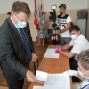 Сегодня все избирательные участки открылись для голосования. Председатель Горсовета Владимир Корбут пришел на свой избирательный участок в гимназию №69.