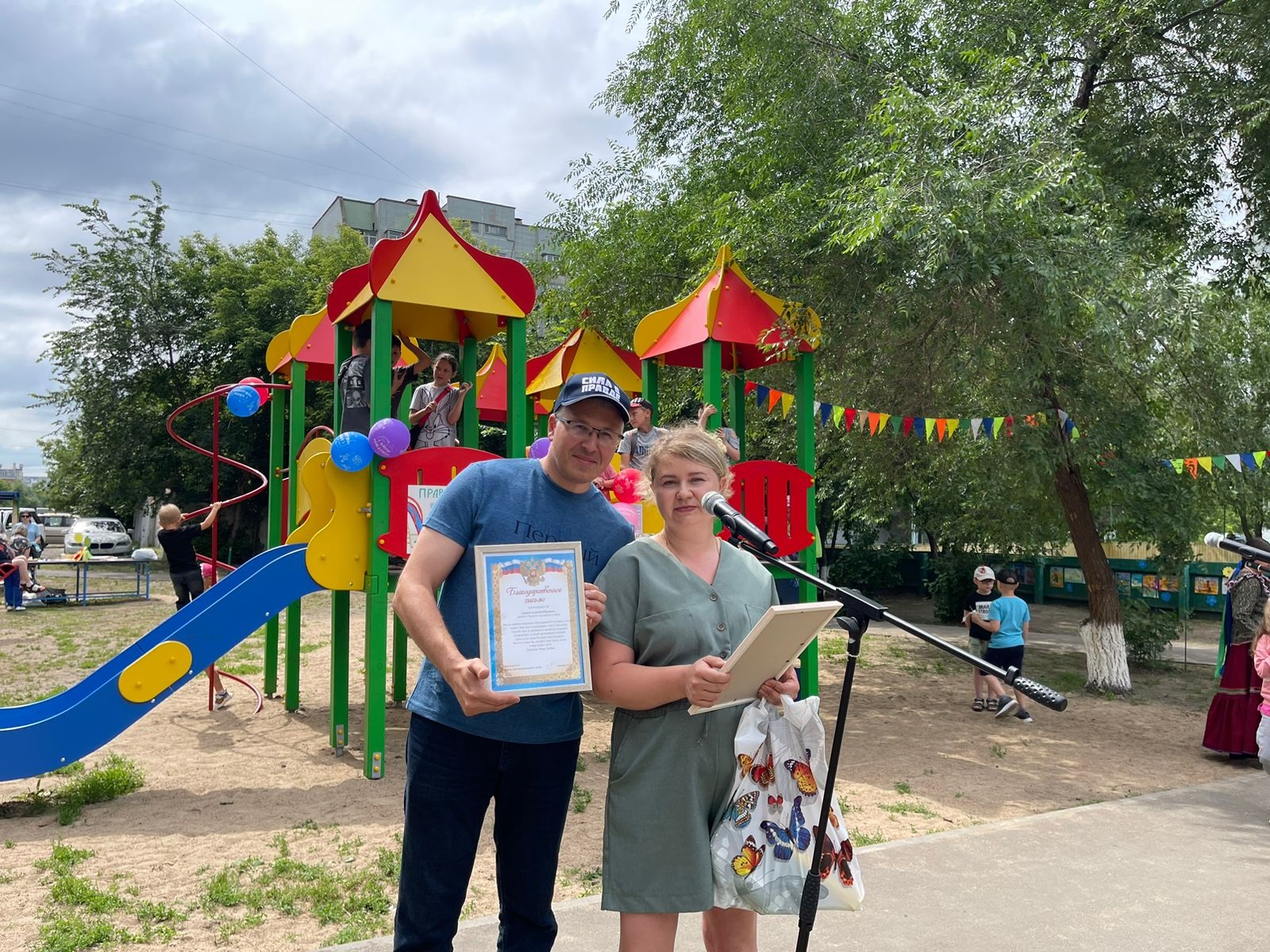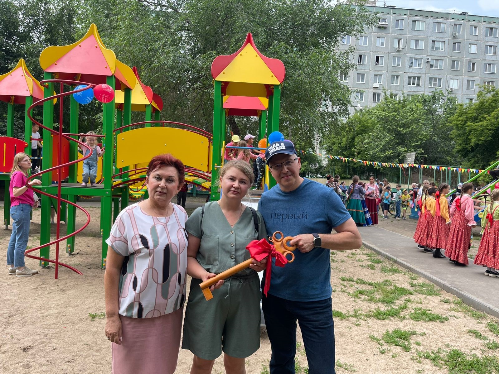 Во дворе дома № 42 по улице Богдана Хмельницкого в субботу прошло праздничное открытие долгожданной многофункциональной детской площадки.