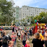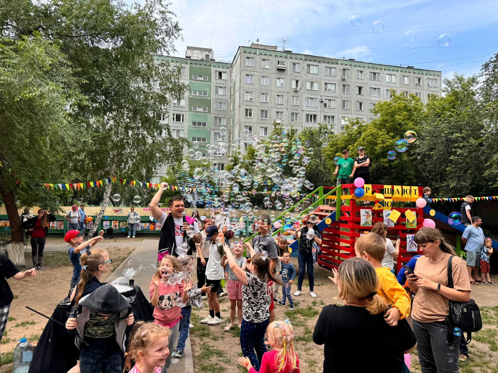 В качестве подарка для детей депутат со своей командой организовали шоу мыльных пузырей.