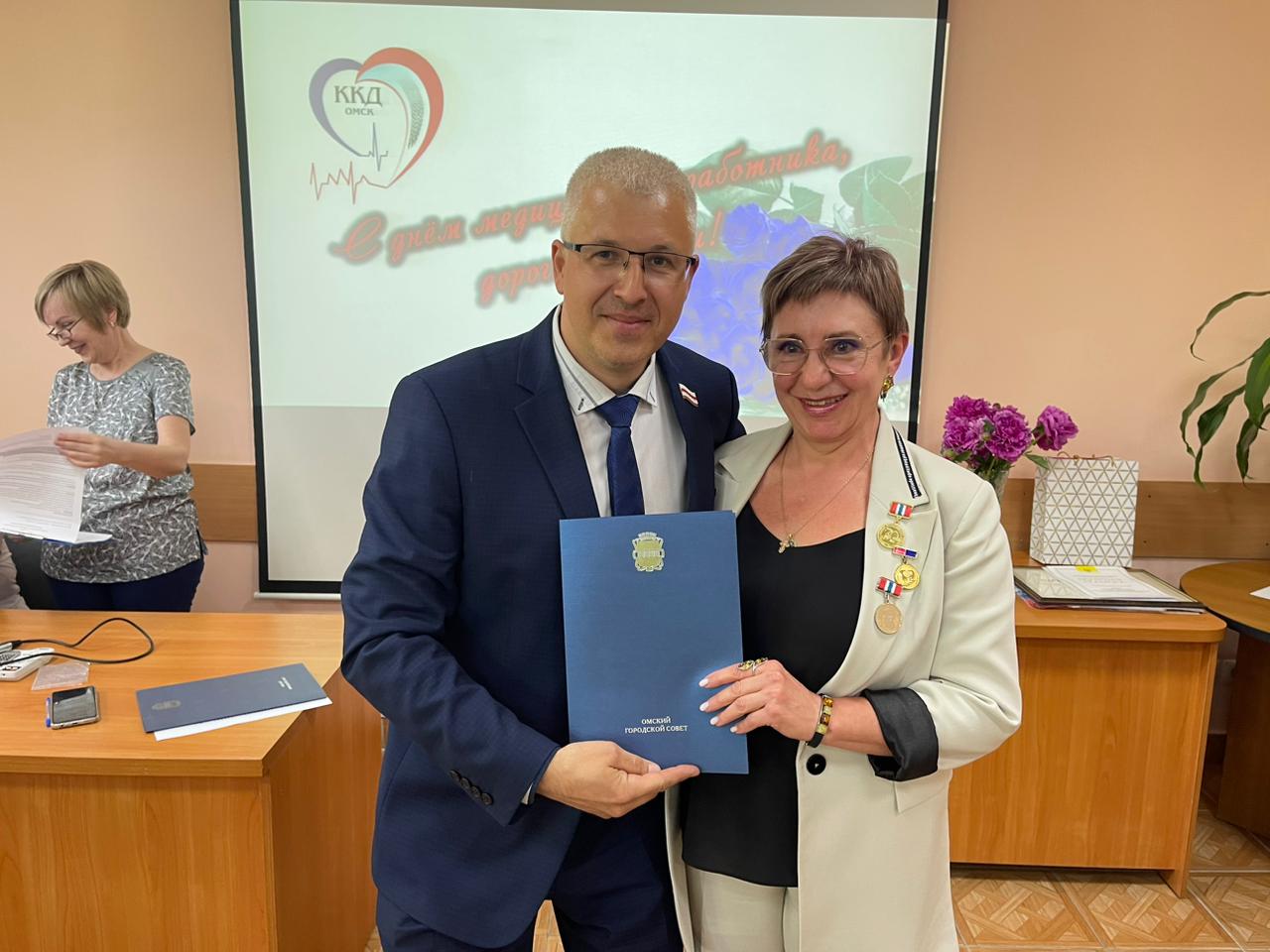 Сегодня депутат вручил благодарственные письма сотрудникам Омского Клинического кардиологического диспансера.