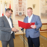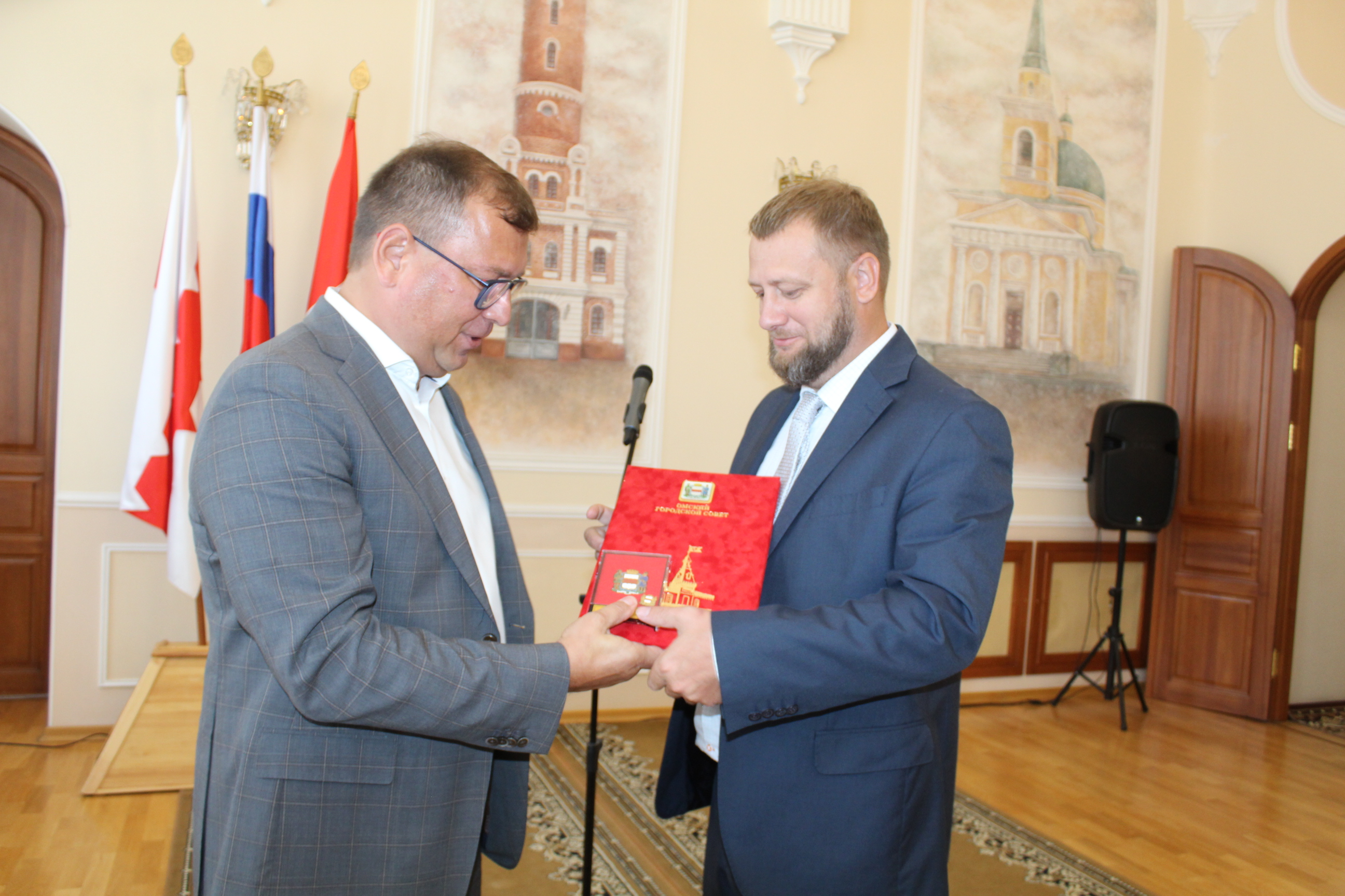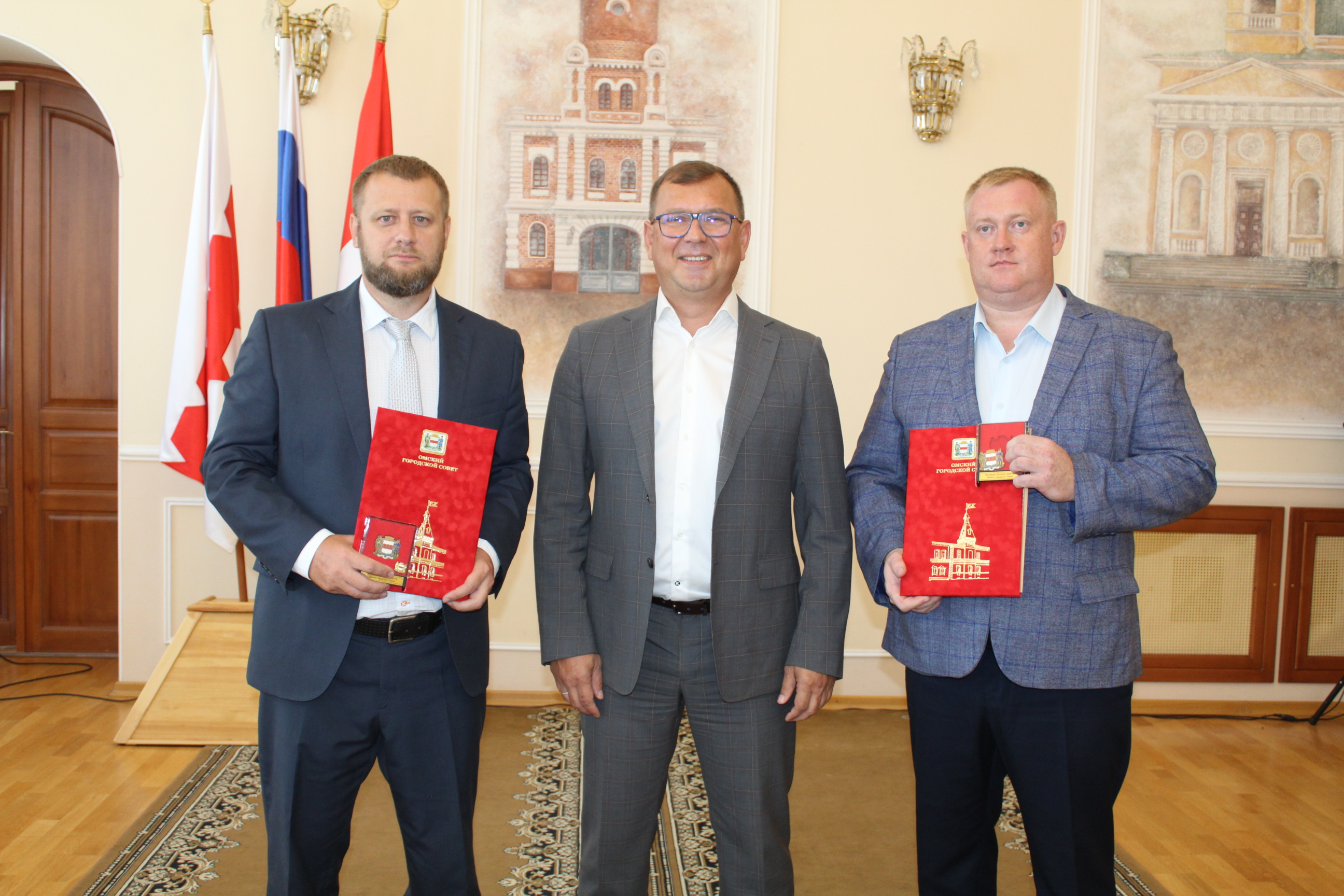 Заместитель председателя Омского городского Совета Дмитрий Сахань поздравил строителей-проектировщиков с Днём Государственного флага, а также вручил Почетные грамоты городского парламента в честь прошедшего знакового праздника - Дня строителя.