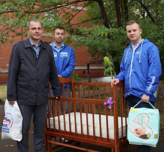 Депутат, активисты партии «Единая Россия» и молодогвардейцы передали детскую кроватку, подгузники и другие вещи, о которых просила семья.