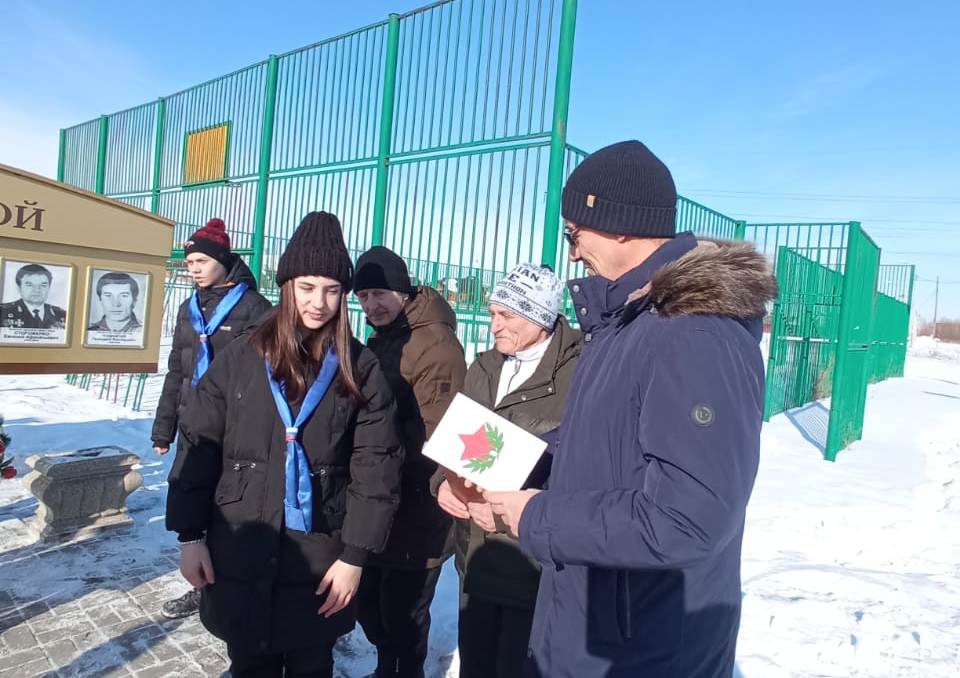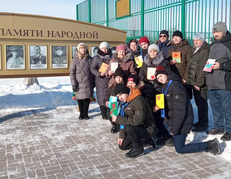 Школьники сделали сами и вручили всем присутствующим на мероприятии поздравительные открытки «С Днем защитника Отечества».