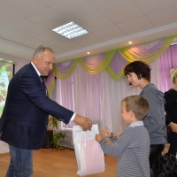 В рамках ежегодной благотворительной акции «Семья помогает семье» депутат вручил будущим первоклассникам и их родителям школьные подарочные наборы.