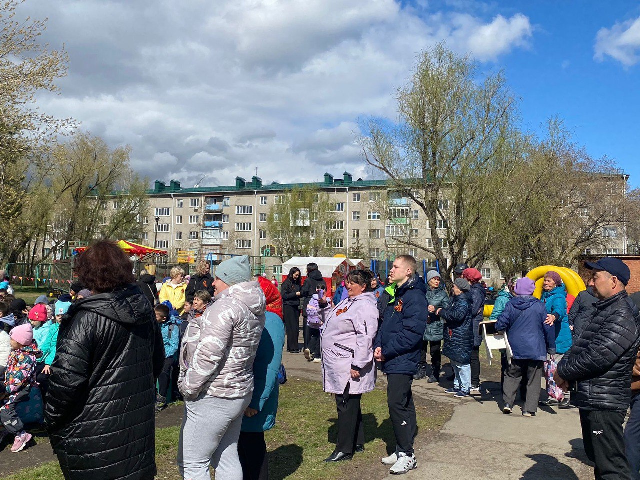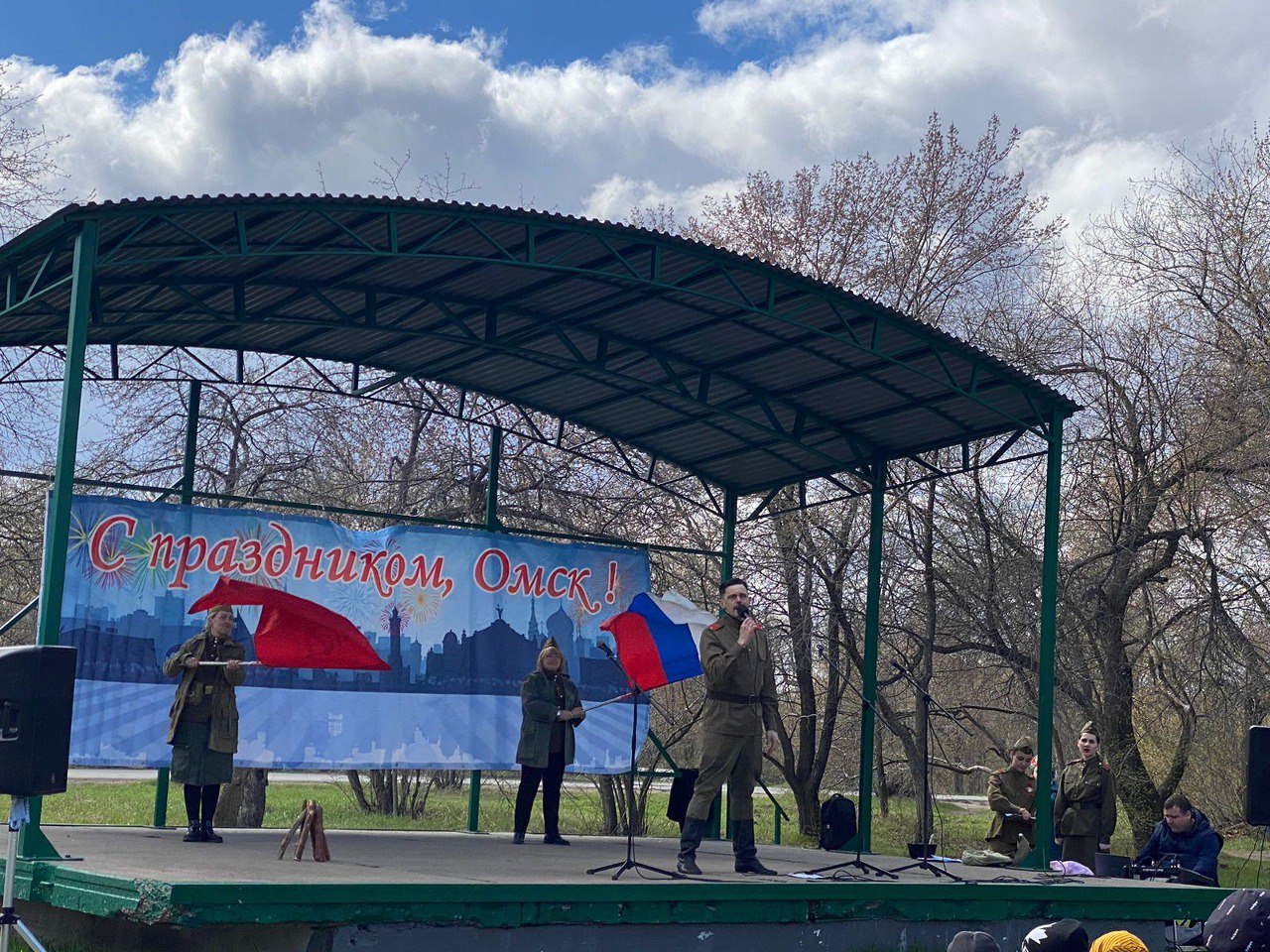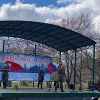Отличное настроение жителям и детям дарили артисты БУ культуры г. Омска «Центр культуры, спорта и развлечений «Береговой». Люди подпевали, танцевали под военные песни. Дети могли покататься на качелях, попрыгать на батутах, угоститься сладкой ватой, покататься на мотоциклах.