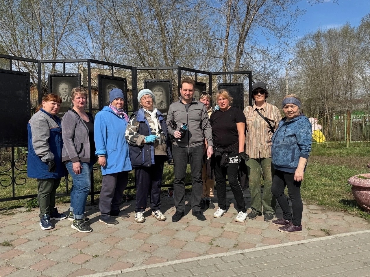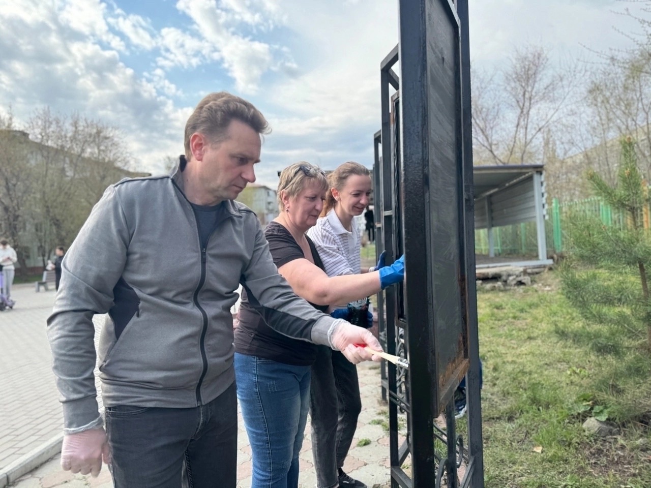 На субботнике на «Аллее Памяти» покрасили конструкции стелы и сцену. На 9 Мая аллею украсят цветами.