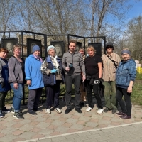 Парламентарий вышел на уборку территорий вместе с активистами КТОС «Левобережный - 9» и сотрудниками администрации Кировского округа. Они привели в порядок «Аллею Памяти» к 80-летию Победы.