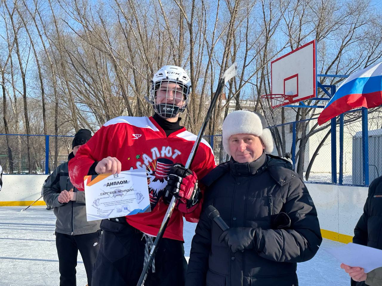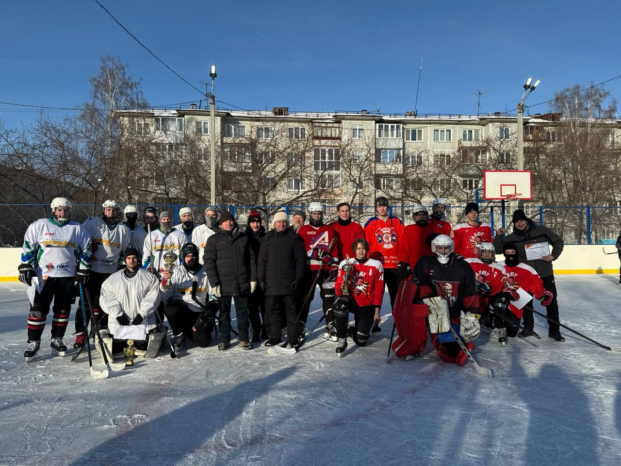 На ледовой площадке обновлённой хоккейной коробки по ул.Рокоссовского, 12/3 встретились детские и взрослые команды и показали настоящую игру. Они продемонстрировали командную сплочённость и волю к победе. Помогал в турнире общественник, тренер, единомышленник Егор Паскевич.