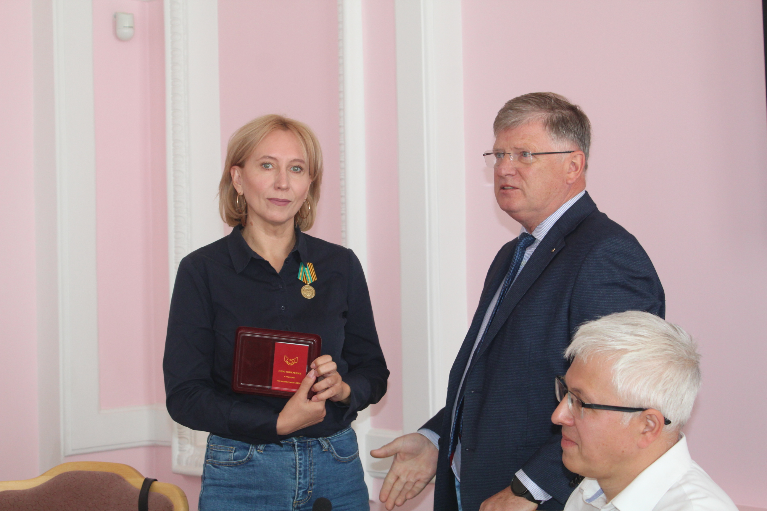 Сегодня на заседании комитета по финансово-бюджетным вопросам председатель Омского городского Совета Владимир Корбут вручил Инне Гомолко медаль «За содействие СВО» от ОГОО «Союз ветеранов и ветеранских организаций города Омска».