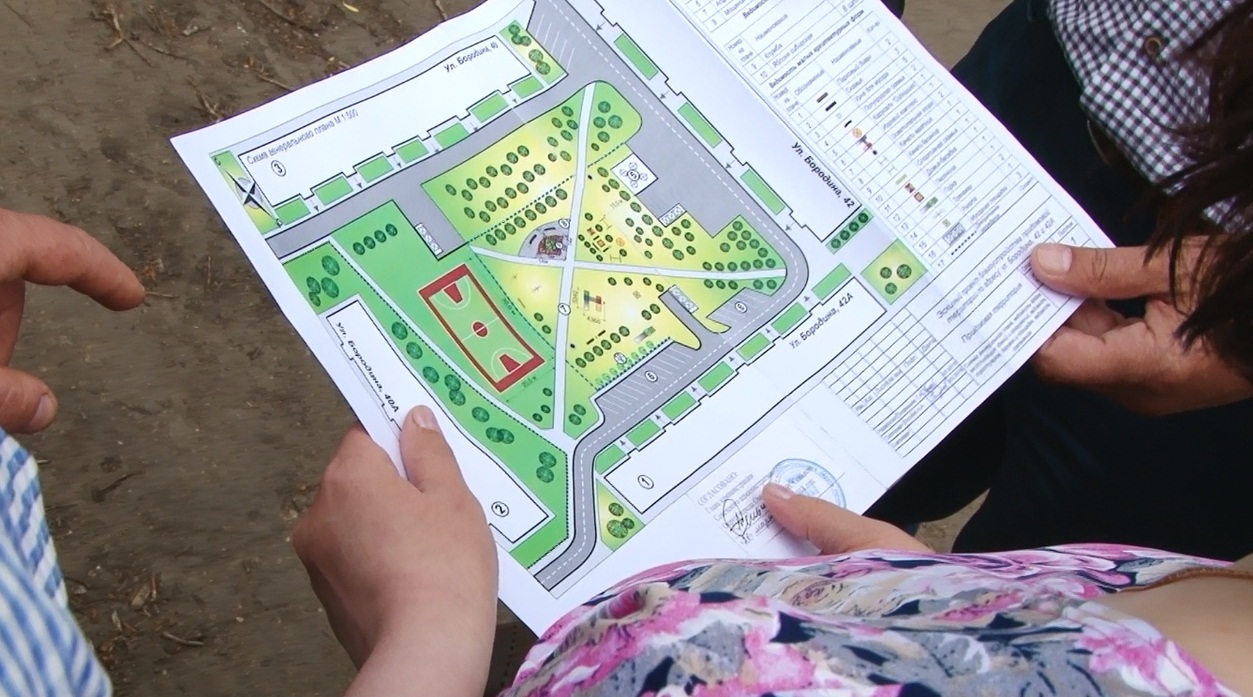 Во дворе дома по улице Бородина собрание. Председатель КТОСа рассказывает о планах благоустройства площадки. Событие долгожданное - последний ремонт здесь был 15 лет назад. Территория большая, но нет на ней места ни детям, ни старикам: скамейки прогнили и стали разваливаться, качели заржавели, песочница непригодна для игр. Вместо пешеходных дорожек - ямы.