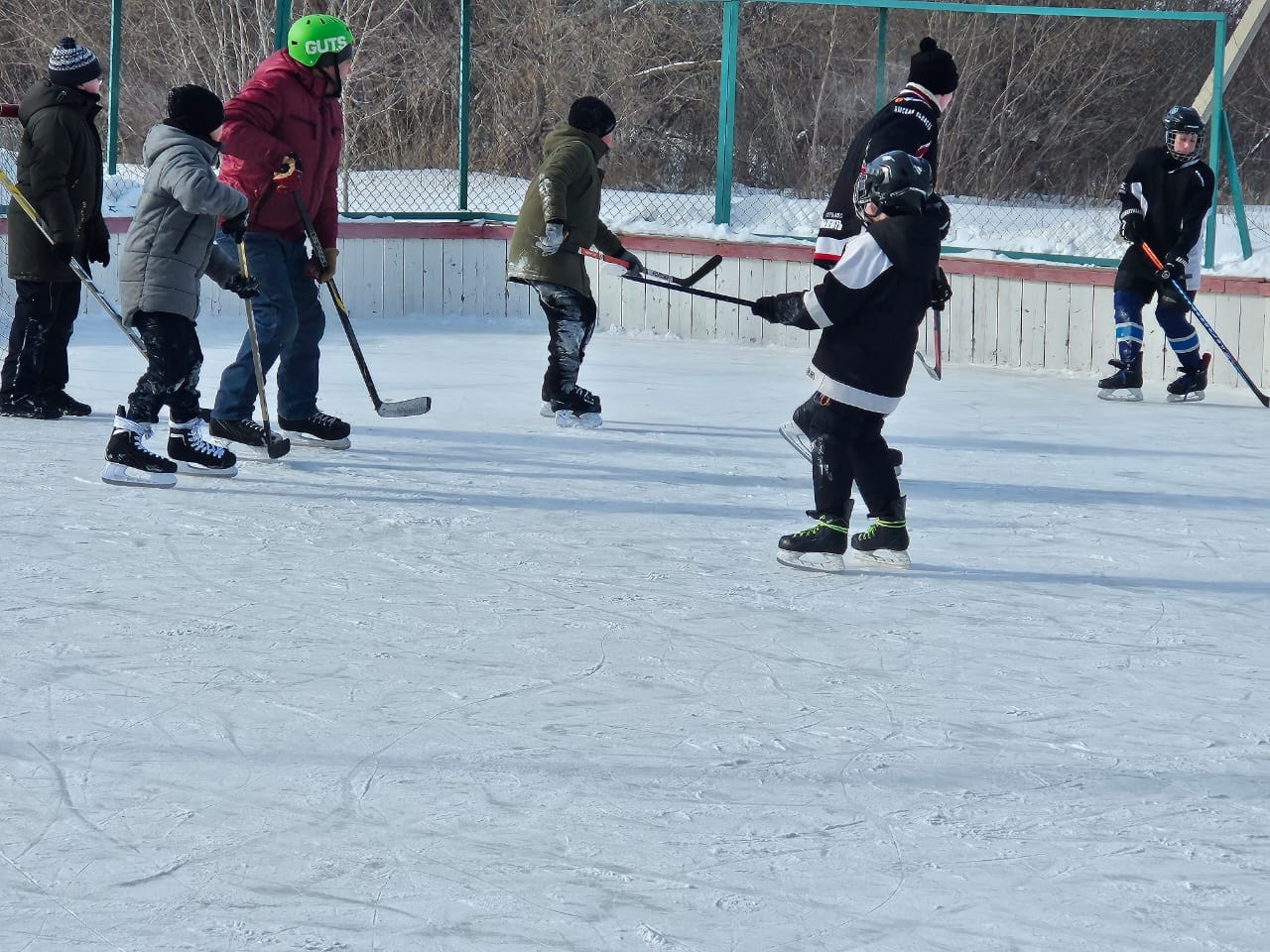 В честь праздника ТОС «Кировец-2» организовал хоккейный турнир в коробке, расположенной на улице Новостройка, 7. Таймас Абдуалинов вместе с жителями стал болельщиком игры между двумя командами «Ястребы» и «Авангард». Победила более опытная команда «Авангард».