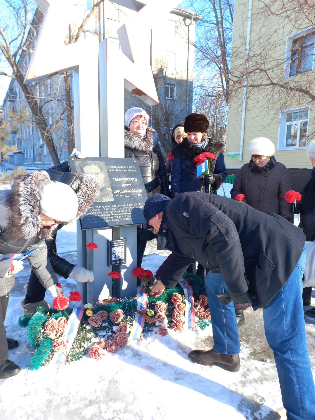 Алексей Провозин с жителями своего избирательного округа возложил цветы к Стелле Героя Советского Союза Юрия Владимировича Тварковского.