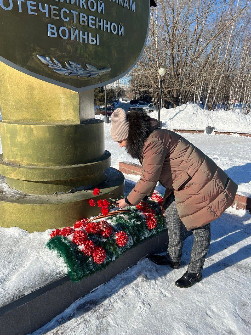 Наталья Чебыкина вместе с жителями Советского округа возложила цвета к стеле войнам – омичам, участникам Великой Отечественной войны.