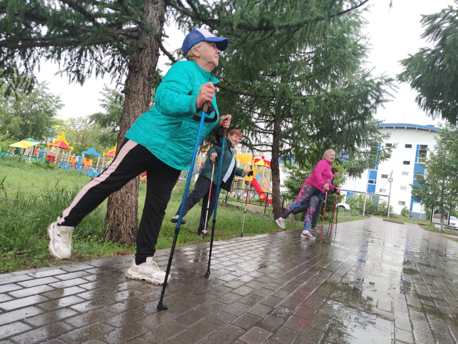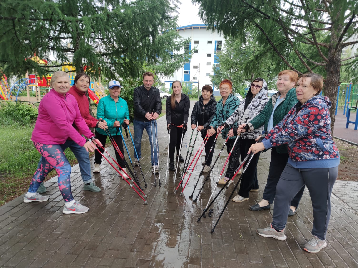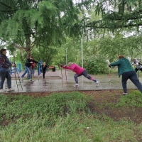 С помощью депутатов омички обзавелись квалифицированным тренером, который проводит занятия каждый вторник. Елена Федоровна Голубчикова разработала такую программу, которая посильна любому желающему присоединиться к группе, упражнения просты и эффективны, а также поднимают настроение. Это на себе ощутил уже неоднократно и сам Валерий Студеникин. Говорит, занятия с этим тренером настолько эмоциональны и активны, что на тренировки пенсионеры ходят с большим удовольствием в любую погоду, даже, как сегодня, в дождь: