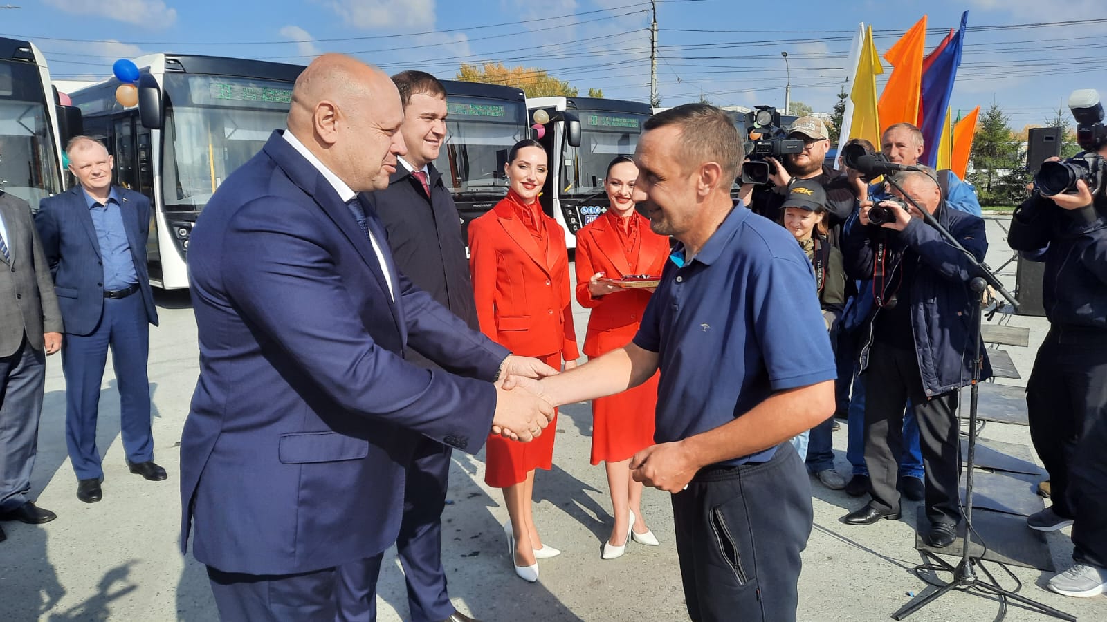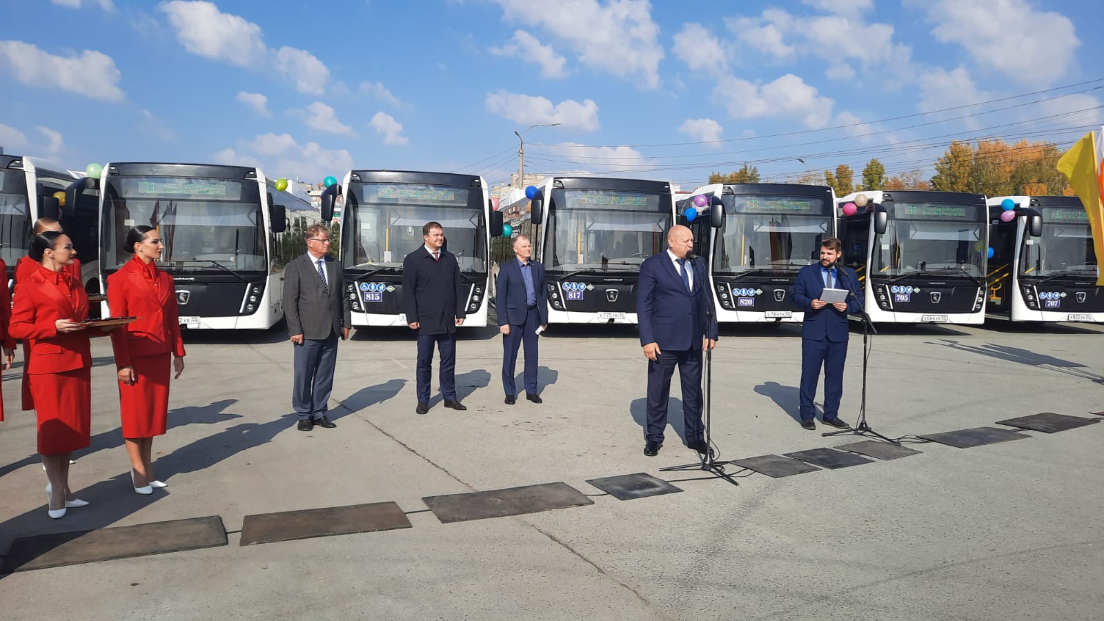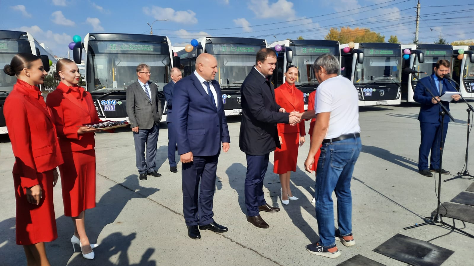 Сегодня, 26 сентября, состоялось торжественное вручение ключей от новых автобусов марки «НЕФАЗ» водителям муниципального пассажирского предприятия № 8.