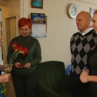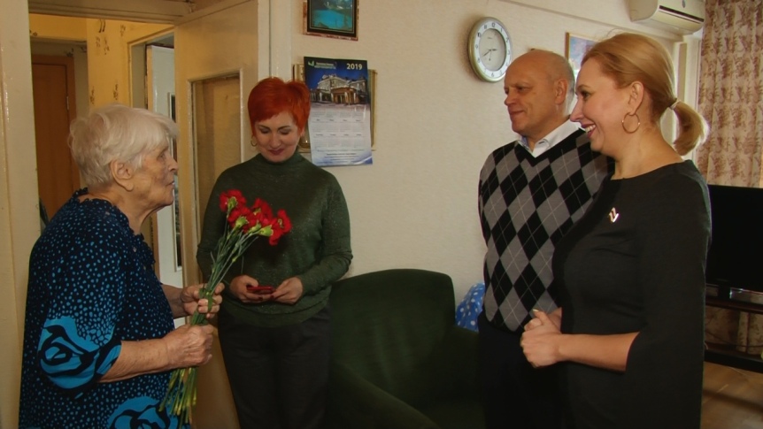 Ветеран Великой Отечественной войны, 93-летняя Евдокия Степановна Циринская, принимает поздравления сенатора Виктора Назарова и депутата горсовета Инны Гомолко. Цветы и подарки Евдокия Степановна в свои 93 получать привыкла. Нередки в ее доме и гости.