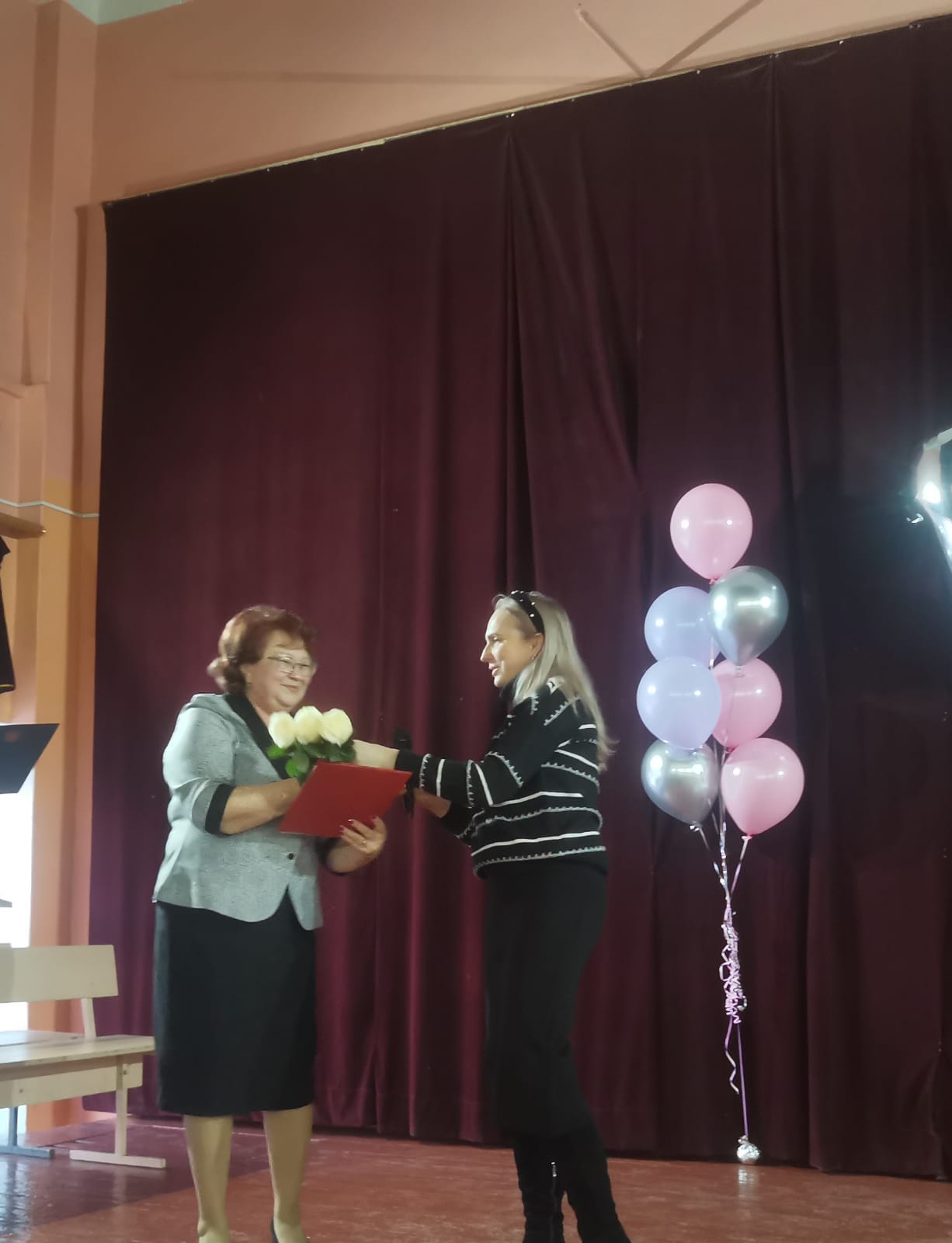 Вначале директор школы Татьяна Корчагина поздравила всех присутствующих с праздником. Потом в торжественной обстановке чествовали учителей, вручали цветы и подарки ветеранам. Звучали поздравления и песни для многочисленных гостей.