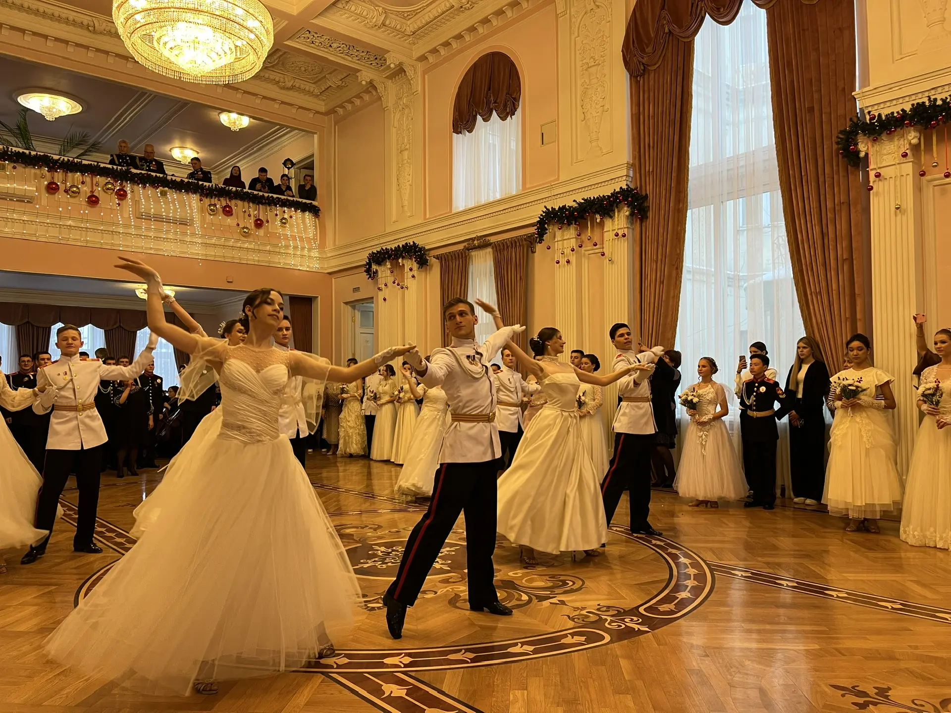 Пары танцевали вальс, полонез, польку, мазурку и другие бальные танцы. Музыкальное сопровождение обеспечил Омский академический симфонический оркестр.