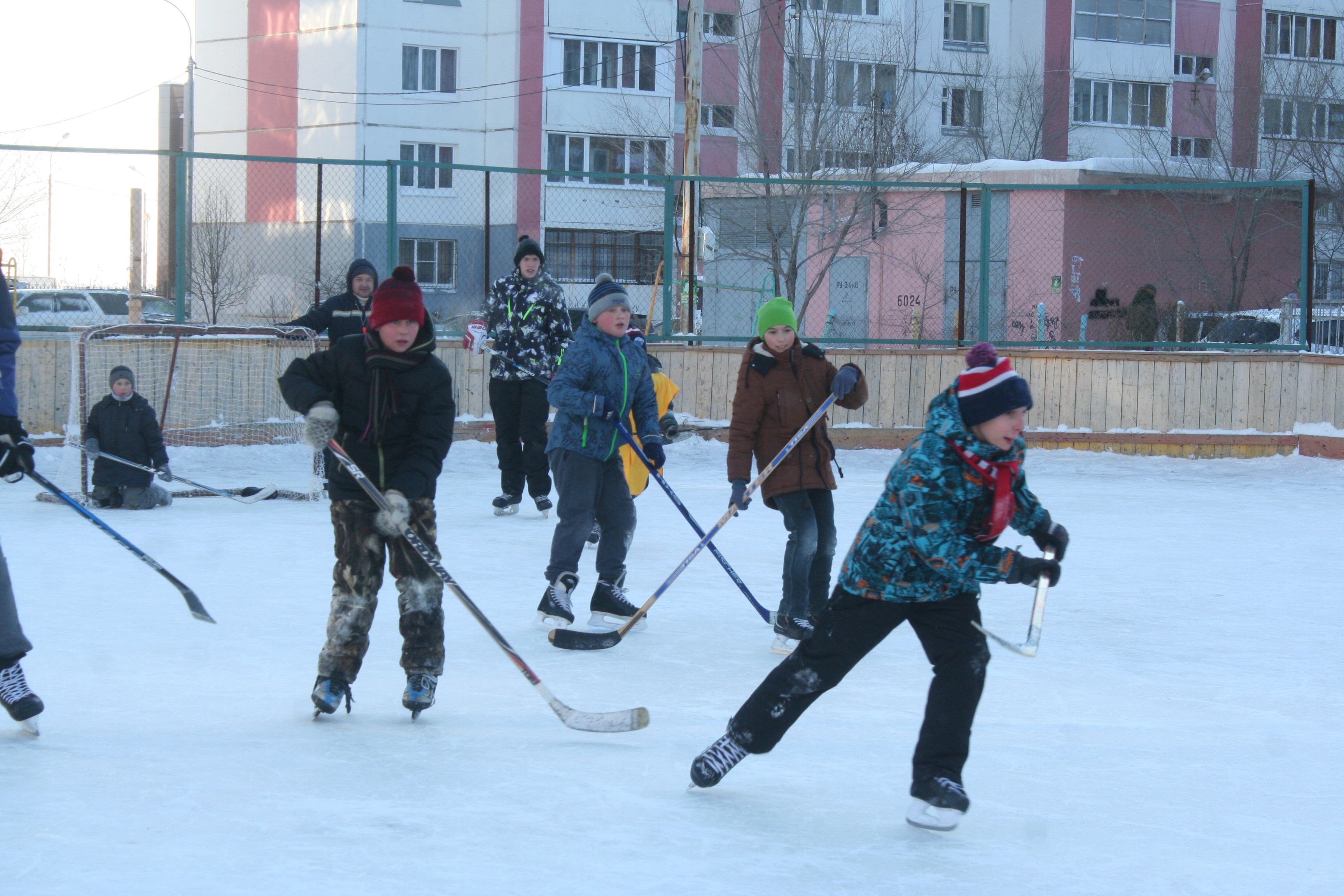 Посмотреть на ледовые баталии вышли жители соседних домов. Молодая родители с шестилетним Игнатом рассказали, что их сын уже интересуется хоккеем, и уже есть успехи. Мальчикам заниматься спортом необходимо, считают они, это и здоровье, выносливость, и отвлечься от компьютера помогает отлично!