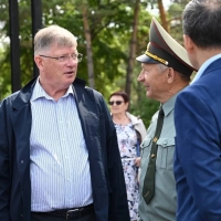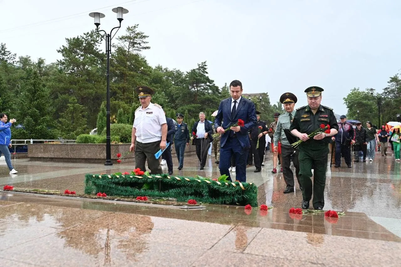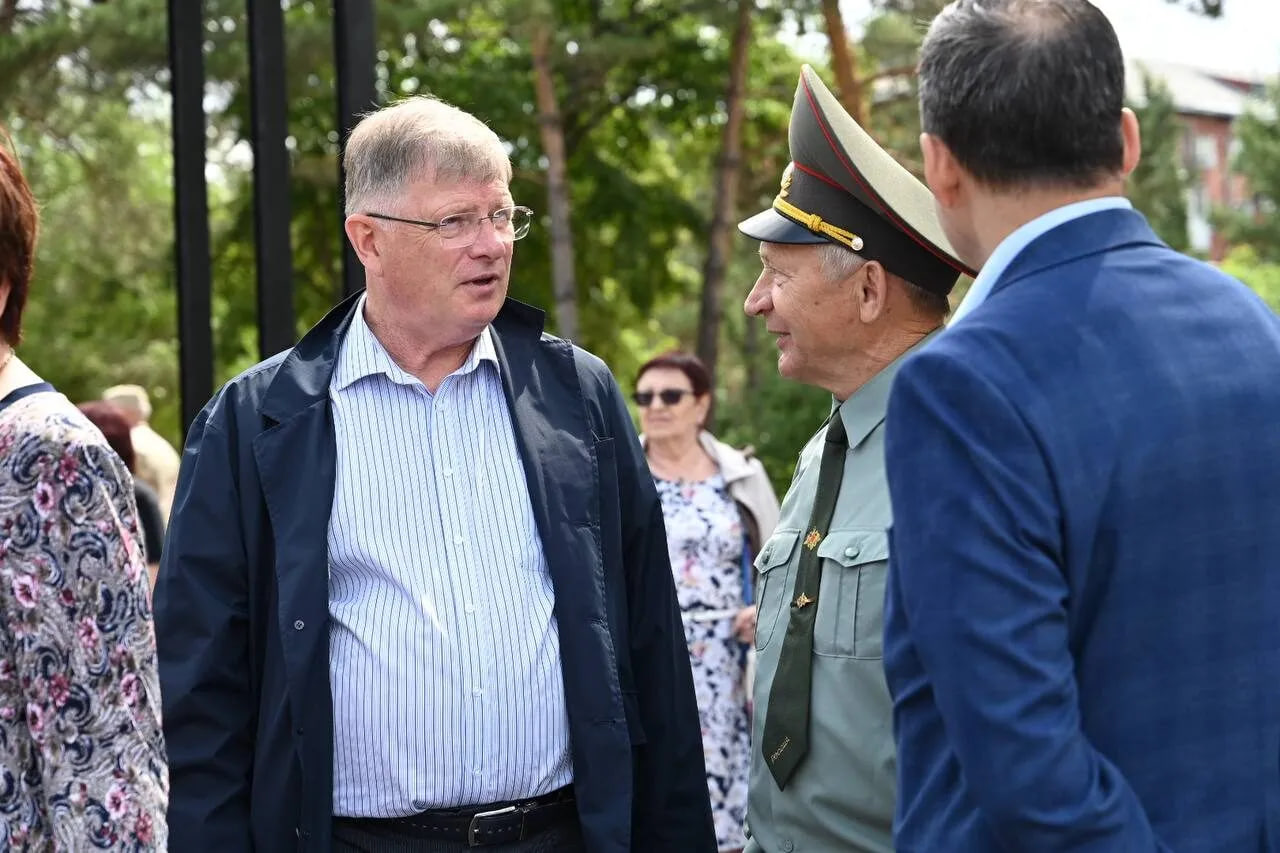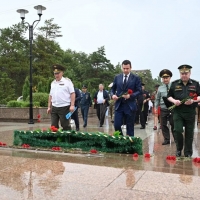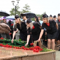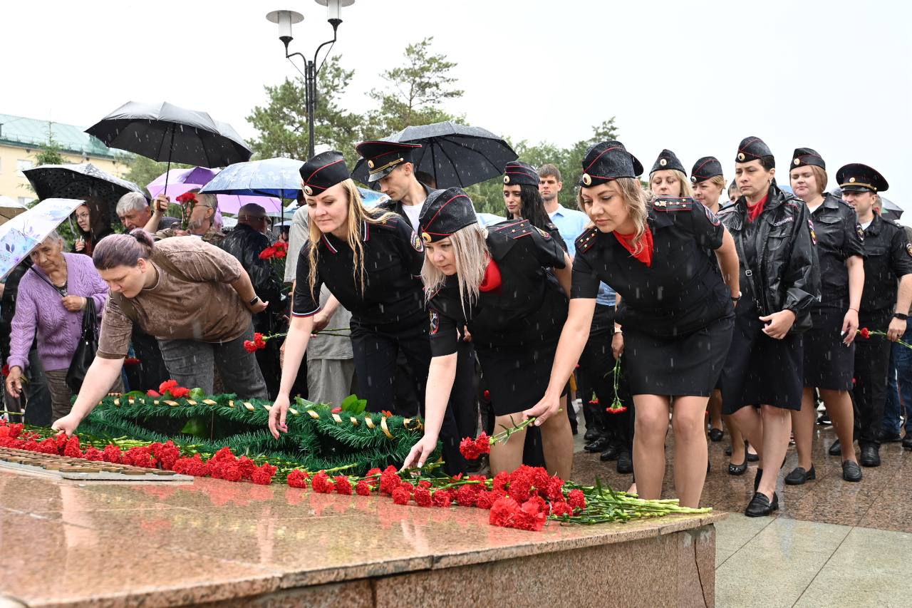 В завершении торжественной части председатель Омского городского Совета Владимир Корбут совместно с руководителями УВД, ветеранами, активистами и общественниками возложили цветы к мемориалу «Слава героям».