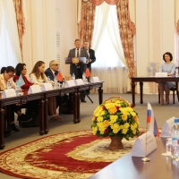 Высоких гостей в Зале органной и камерной музыки принимали спикер Горсовета Владимир Корбут и мэр Омска Оксана Фадина.