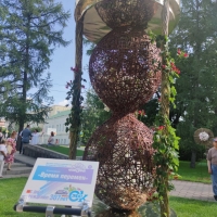 В этом году выставка зеленого строительства посвящена теме времени и называется «Время выбрало нас», поэтому эта выставка о прошлом и настоящем и даже о вечности. Шестиметровое «Дерево жизни» установили в центральной части сквера «Выставочный», это самый большой экспонат экспозиции.