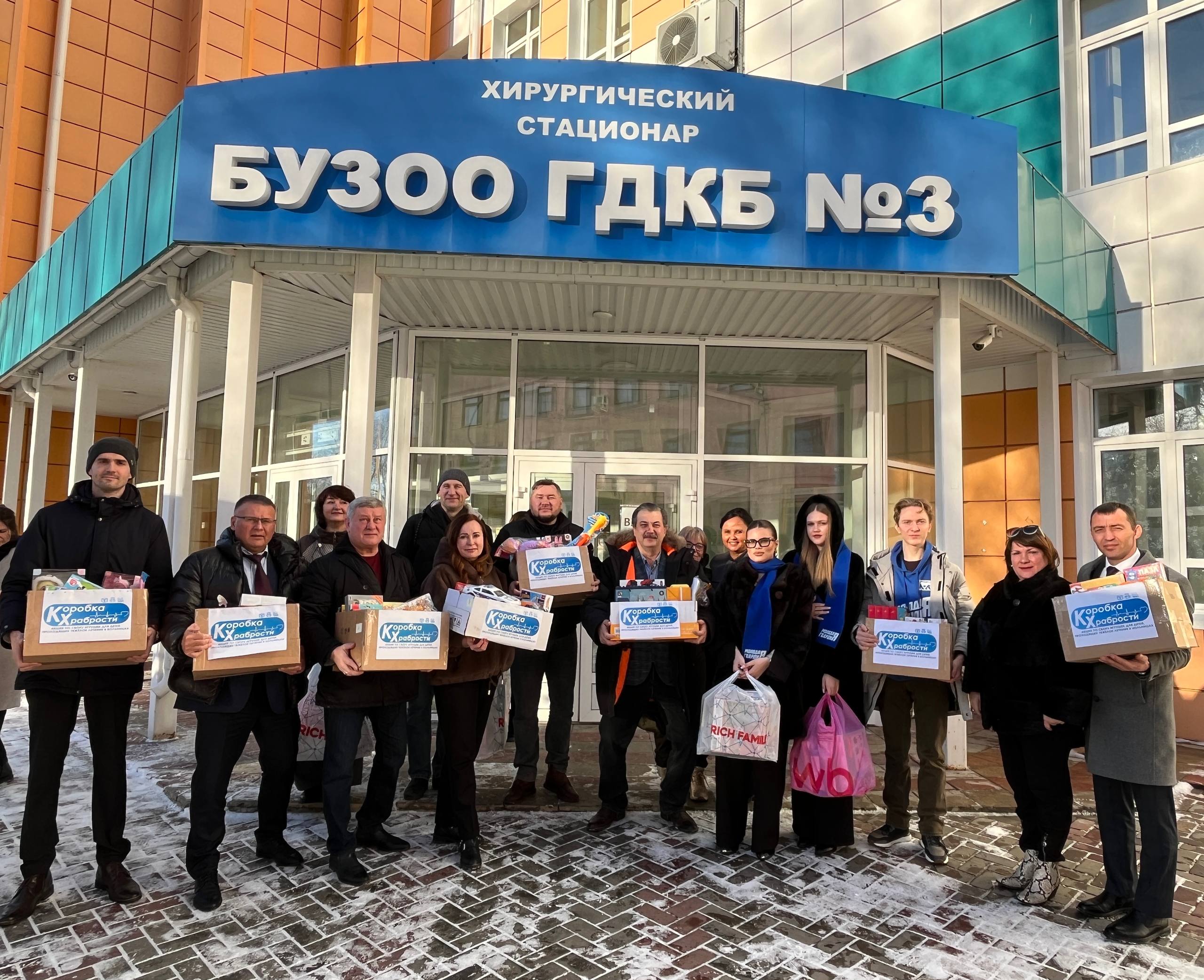 Депутаты фракции «Единая Россия» и сотрудники Омского городского Совета второй год подряд совместно с Контрольно-Счетной палатой города Омска и при поддержке Министерства здравоохранения участвуют в сборе «Коробки храбрости». Он собирают для маленьких пациентов больниц игрушки, развивающие наборы и материалы для творчества. Сегодня все эти предметы, упакованные в коробки отправились в Областную детскую клиническую больницу и Городскую детскую клиническую больницу № 3.