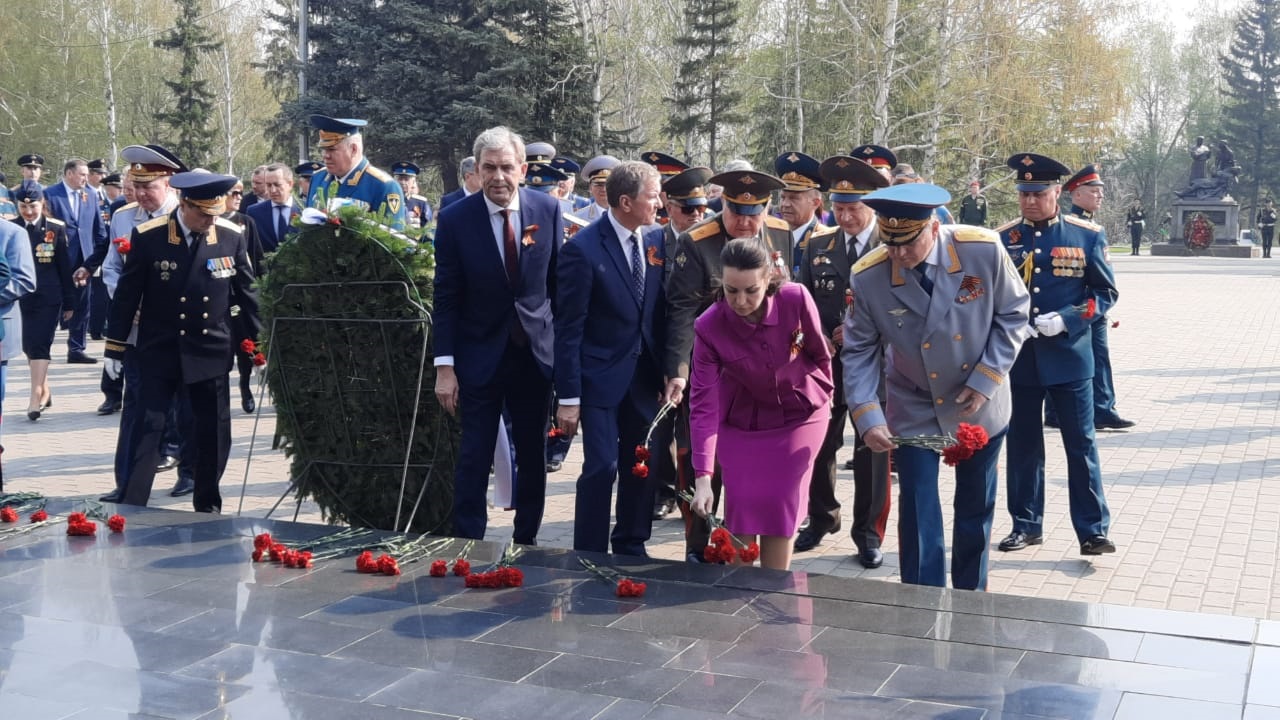 В день празднования 76-ой годовщины Победы в Великой Отечественной войне в Омске прошли торжественные церемонии возложения венков к монументам и обелискам воинской славы.