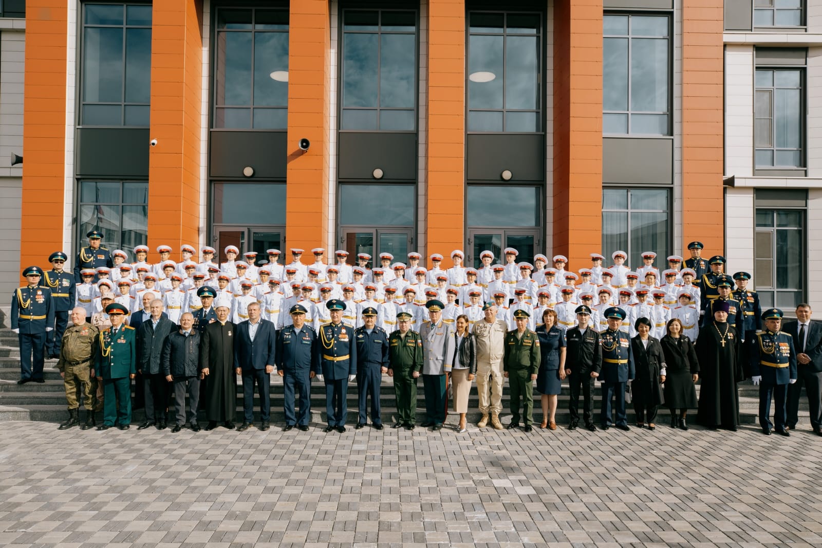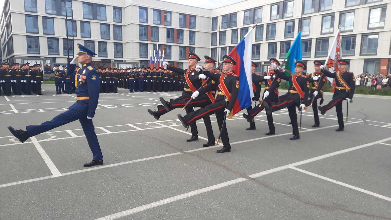 Кадеты прошли торжественным маршем перед многочисленными гостями, родителями, командным и преподавательским составом корпуса, а также исполнили гимн учебного заведения.