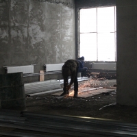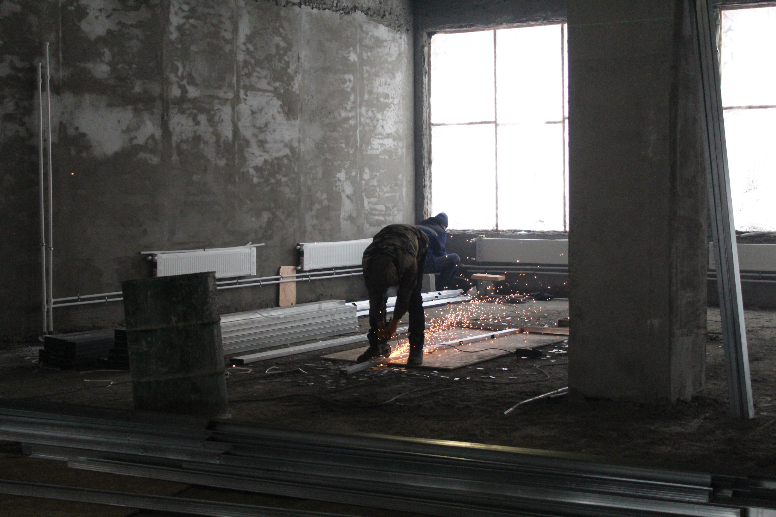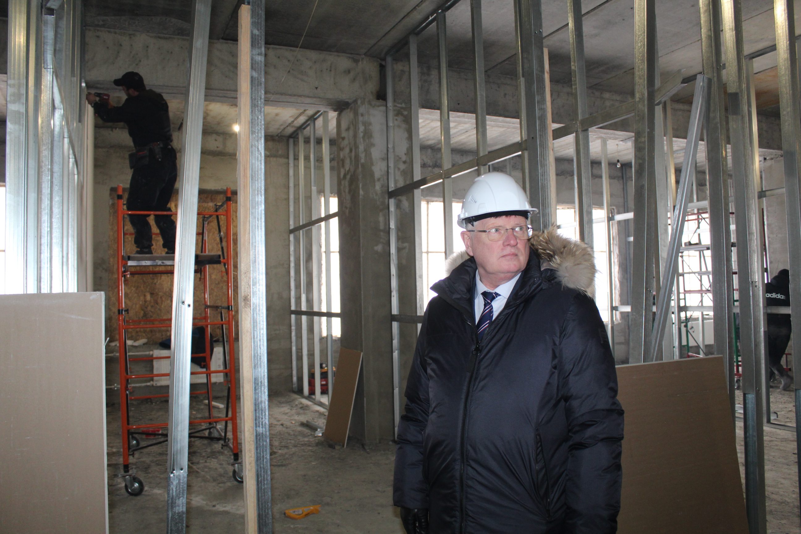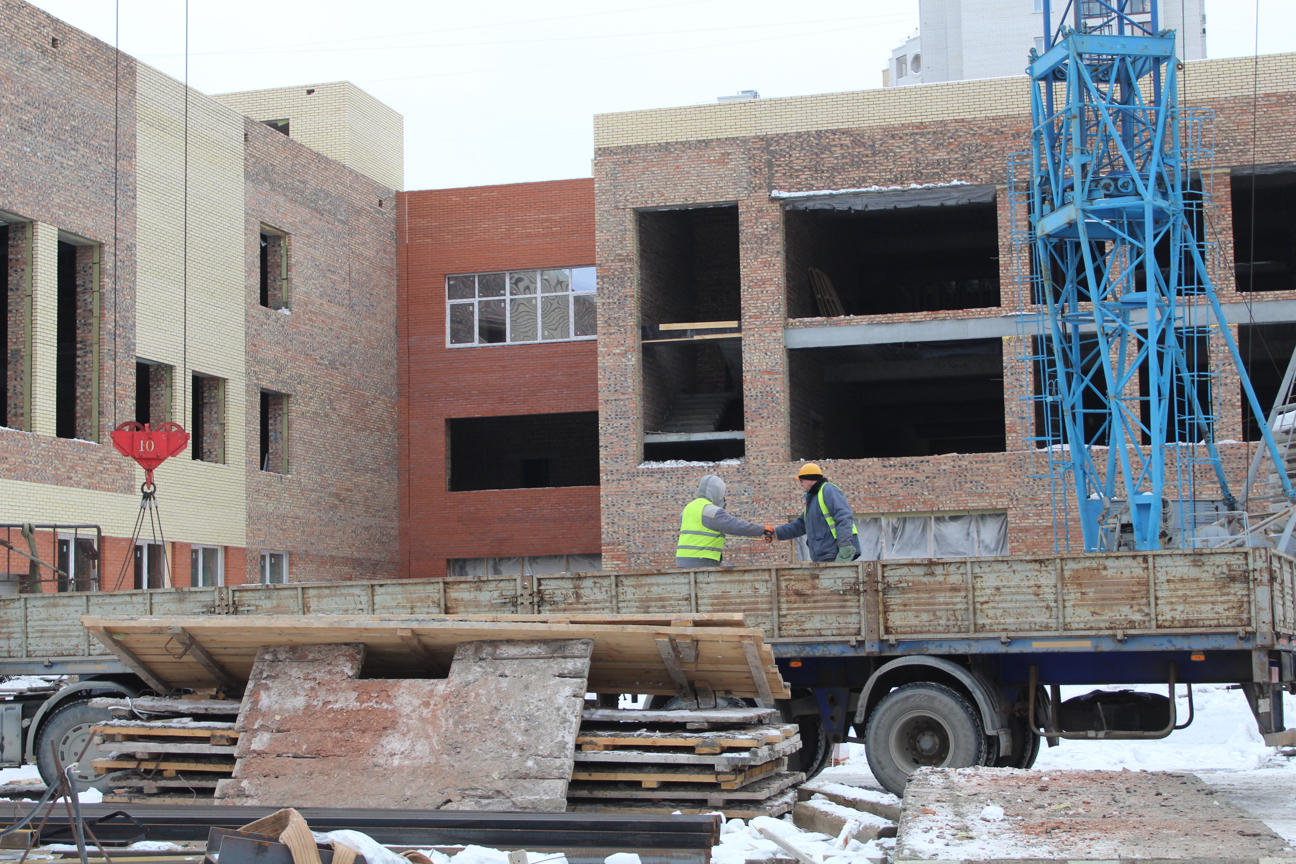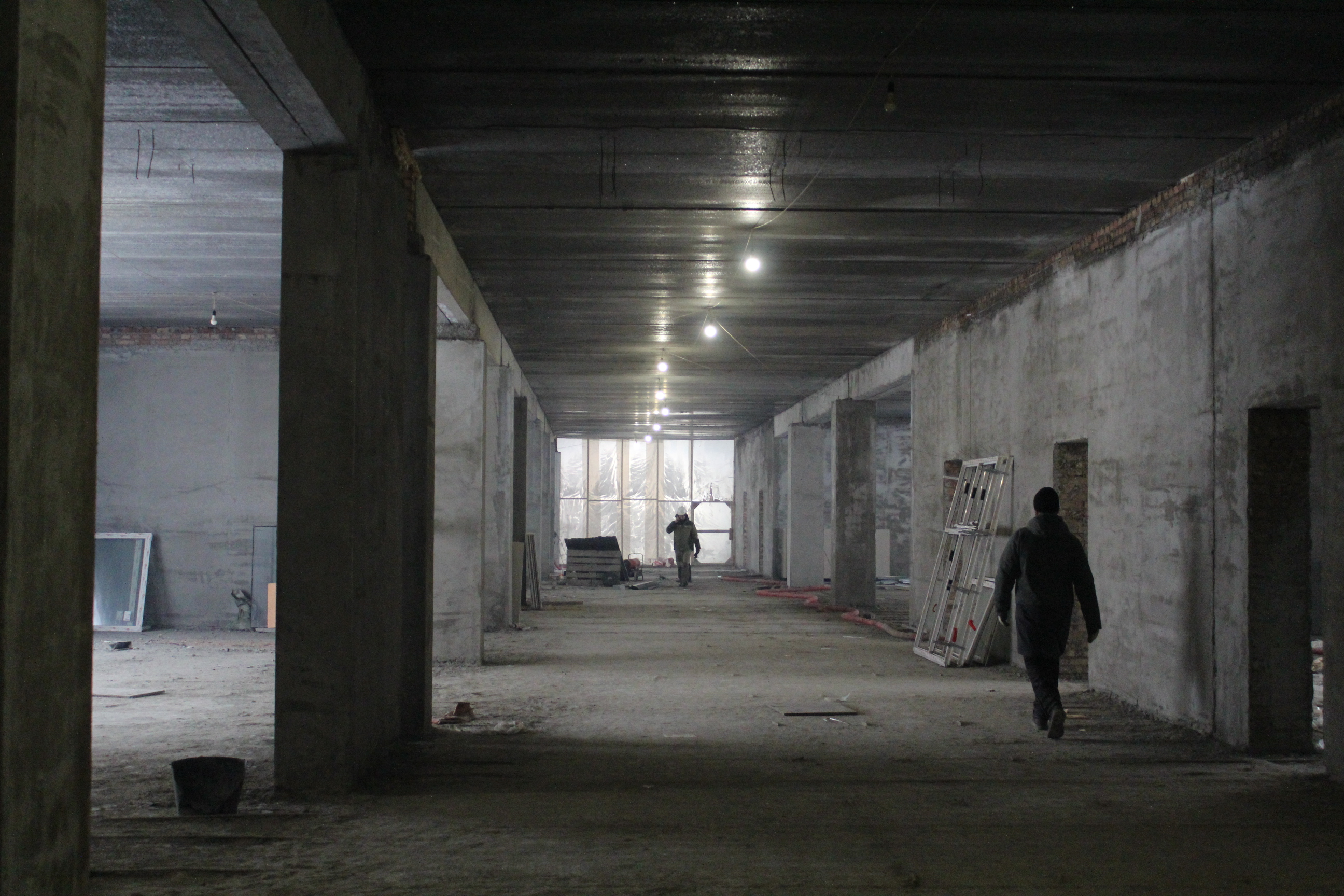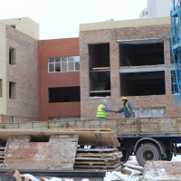 Работы с конструктивом здания — фундаментом, внешними и внутренними стенами, перекрытиями и другими несущими элементами — уже завершены. Сейчас строители прокладывают внутренние сети отопления, вентиляции, электро- и водоснабжения, а также выравнивают стены и полы. В среднем на объекте задействовано от 70 до 90 человек в сутки, и с началом чистовой отделки помещений количество рабочих рук планируется увеличить.
