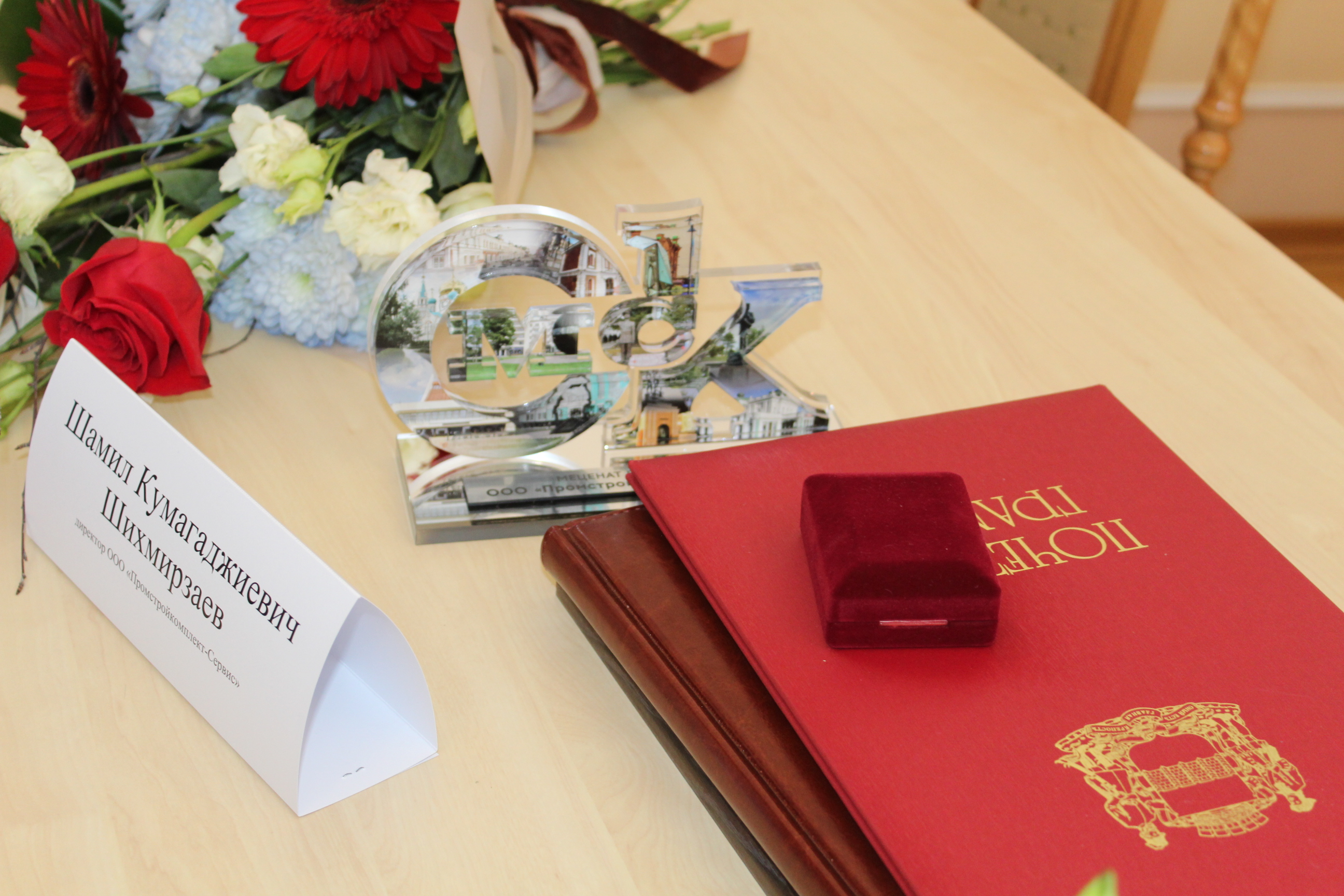 В зале для торжественных приемов Владимир Корбут и Сергей Шелест вручили Шамилу Кумагаджиевичу Шихмирзаеву, руководителю Общества с ограниченной ответственностью «Промстройкомплект-Сервис» Почетную грамоту, свидетельство «Меценат года – 2022», памятный знак «Меценат года – 2022» и нагрудный знак «Меценат». Почетное звание «Меценат года – 2022» было присвоено Решением Омского городского Совета 23 марта. В 2022 году предприятие провело работы по капитальному ремонту в гимназии № 85.