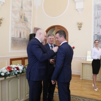 Нагрудные знаки «Меценат» вручили и другим участникам проекта: генеральному директору ООО Группа компаний «Стройбетон» Сасину Александру, индивидуальному предпринимателю, депутату Законодательного Собрания Омской области Татояну Ашоту.