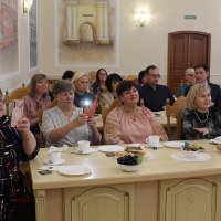 Заместитель председателя Омского городского Совета Светлана Студеникина подготовила для педагогов экскурсию по историческому зданию, организовала чаепитие и праздничный концерт.
