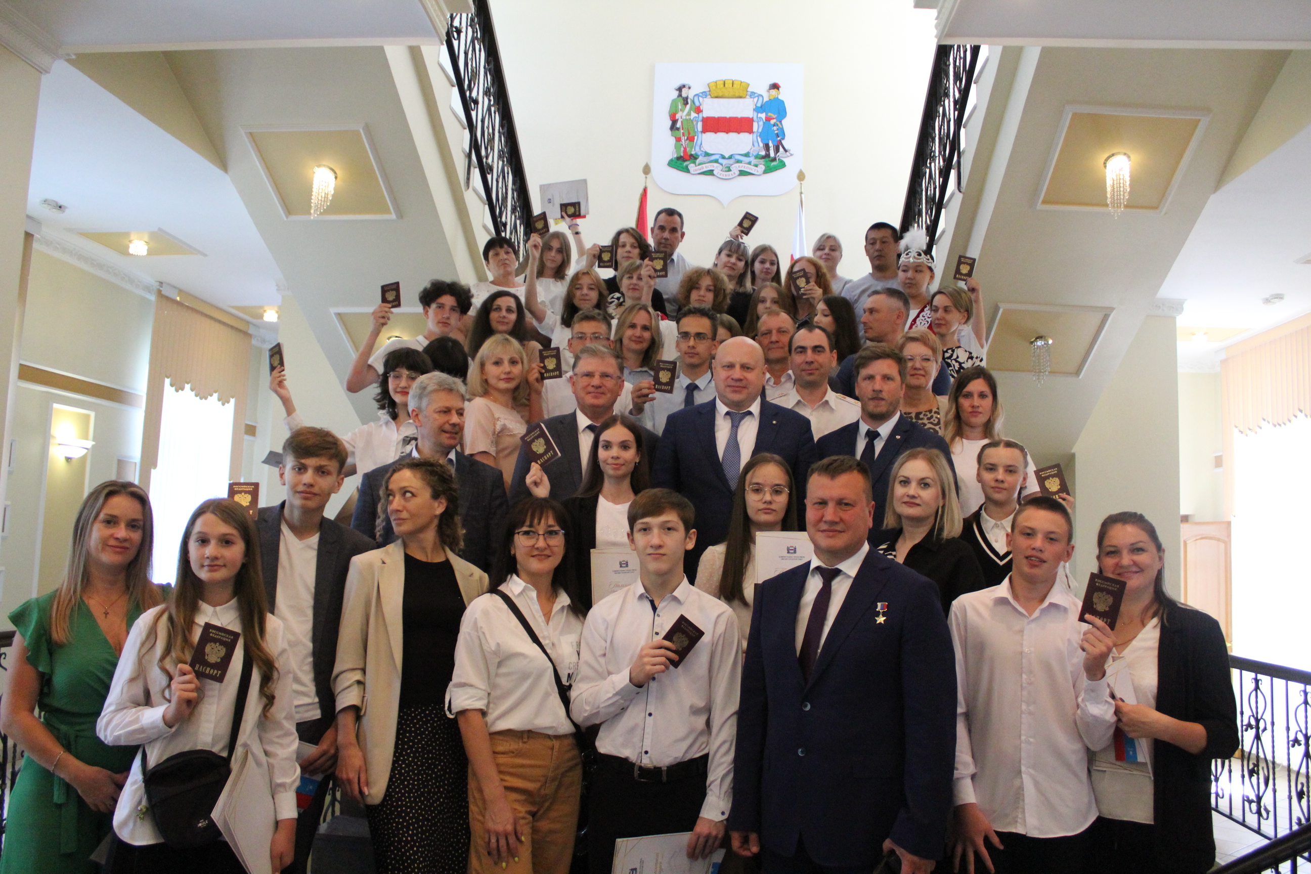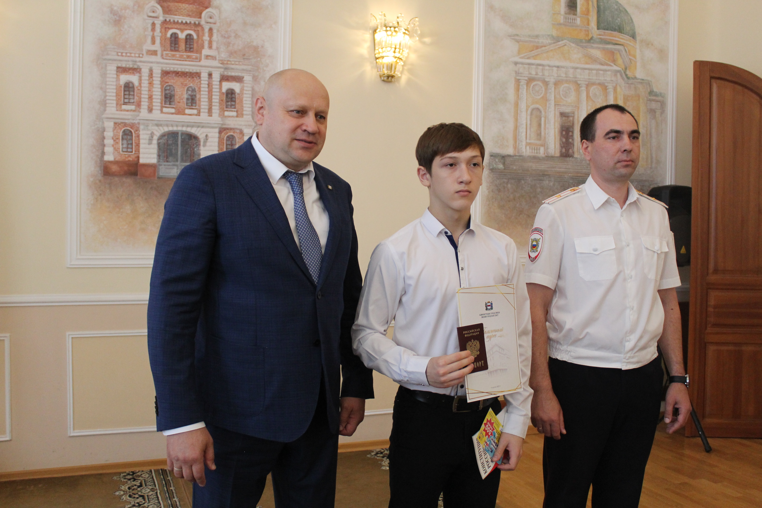 Мэр Омска Сергей Шелест и председатель Омского городского Совета Владимир Корбут вручили первые паспорта 20-ти омским школьникам. Церемония прошла в зале торжественных приемов Омского городского Совета.