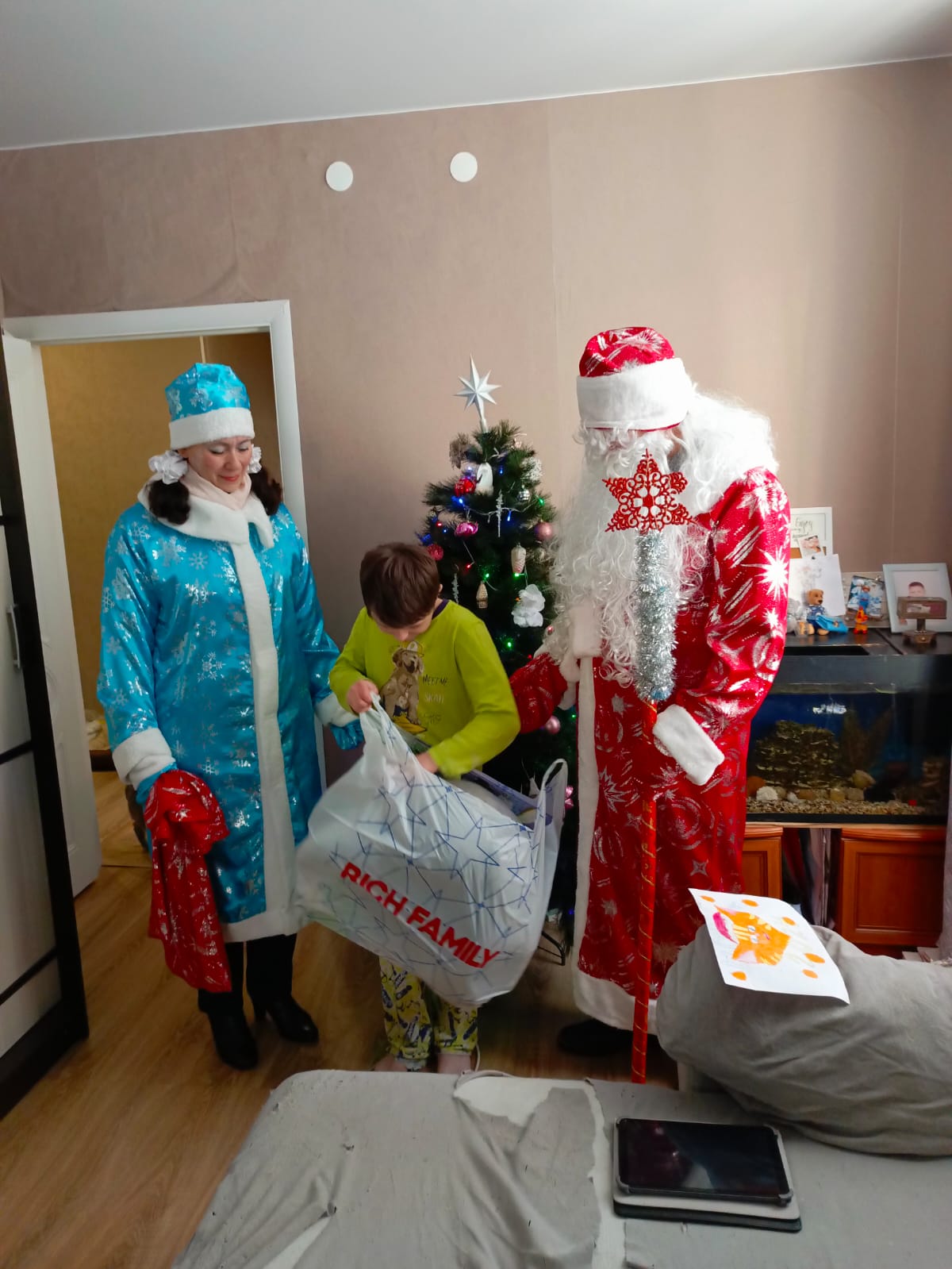 Также депутат побывал у малышей Дамира и Мурата, которые написали письмо Деду Морозу. Мальчишки попросили настольный хоккей и мягкую игрушку. Дед Мороз исполнил мечты ребят.