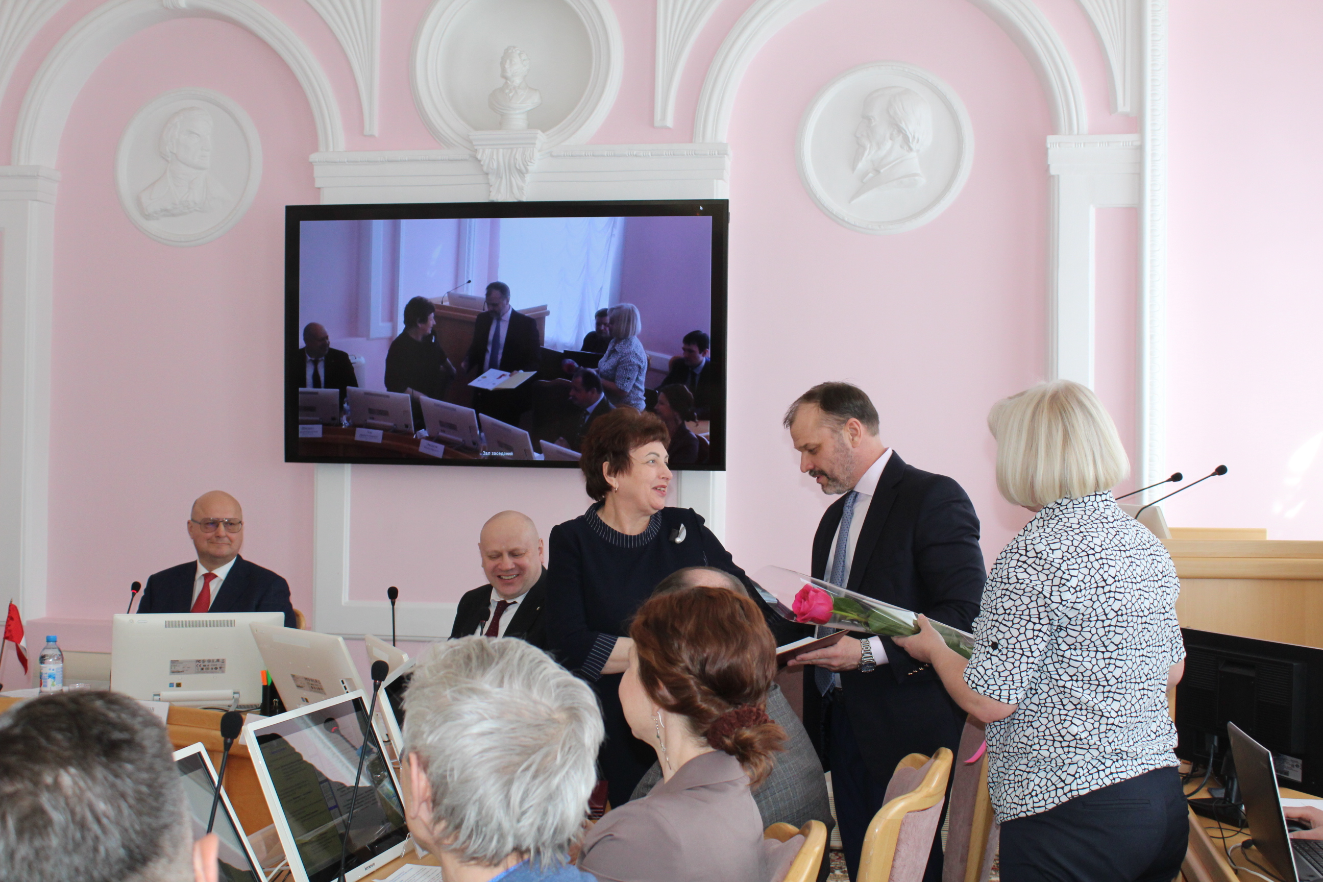 Круглый стол начался с награждения депутатов грамотами клуба руководителей муниципальных руководителей (КРМС) за вклад в развитие местного самоуправления. Почетные грамоты вручили Виталию Путинцеву, Светлане Студеникиной, Сергею Дроздову, Юрию Козловскому, Дмитрию Лицкевичу и Андрею Никитину. Также Почетной грамотой отметили председателя конторольно-счетной палаты Ирину Лен.