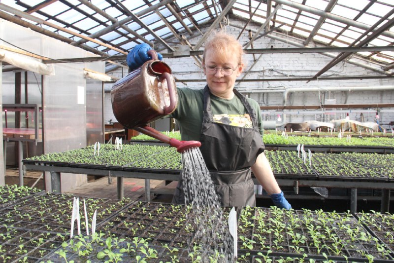 В муниципальной теплице идет кропотливая работа: с января сотрудники зеленой службы УДХБ занимаются цветочной рассадой для городских нужд.